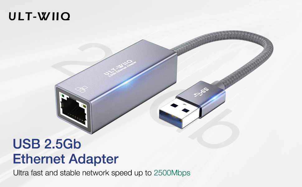 محول إيثرنت USB 2.5 جيجا بايت، ULT-WIIQ USB 3.0 إلى 2.5 جيجابت RJ45 LAN كابل محول الشبكة، 10/100/1000/2500M بطاقة NIC كاملة السرعة لنظام التشغيل Mac OS وiOS وWindows وLinux وDell XPS وThinkpad X وSynology NAS والكمبيوتر الشخصي