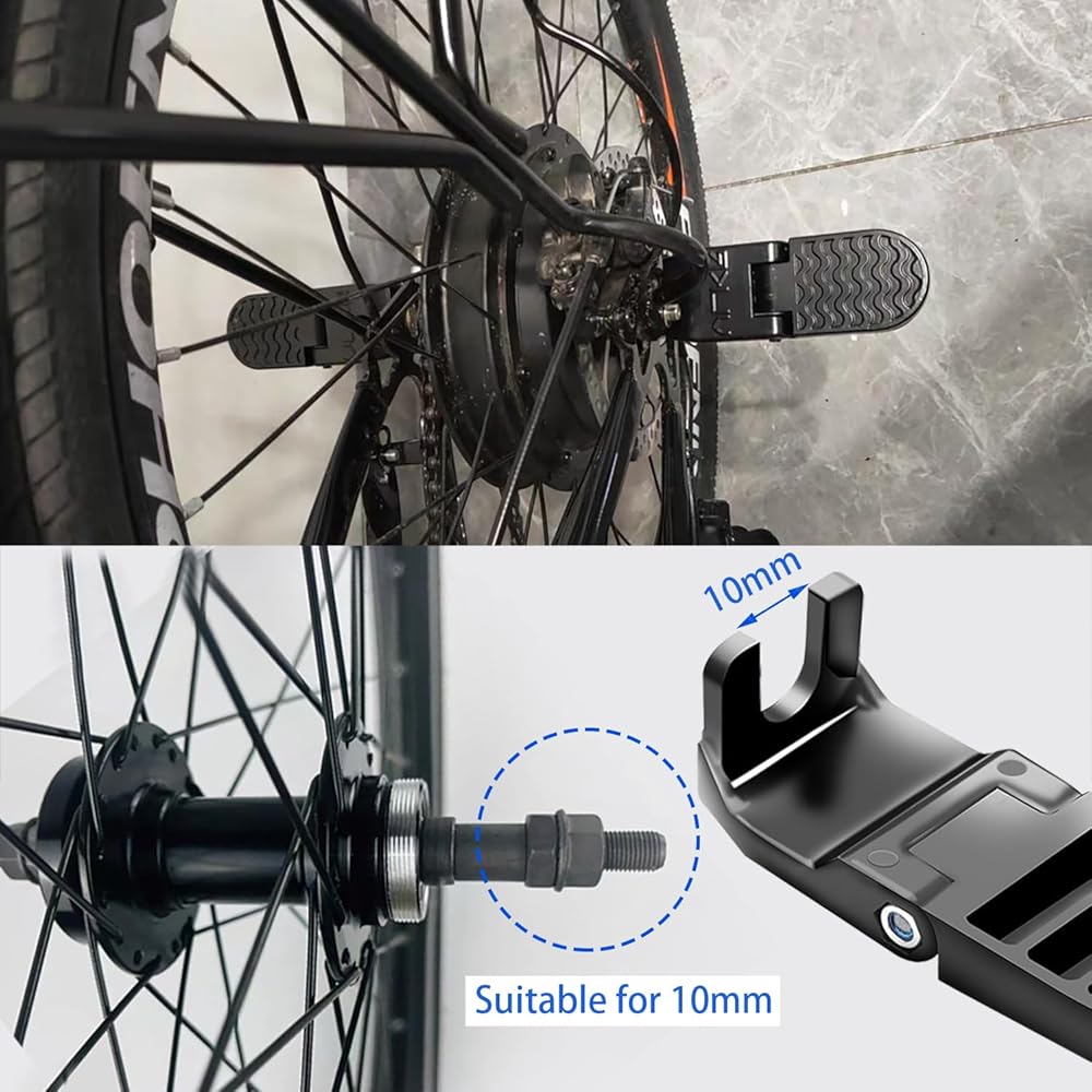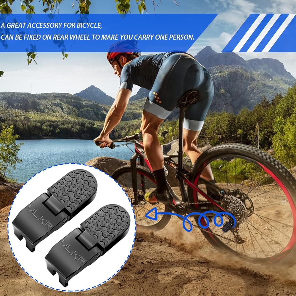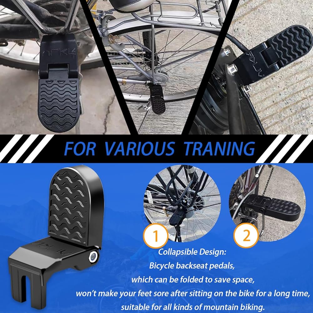 تصميم قابل للطي: دواسات المقعد الخلفي للدراجة، والتي يمكن طيها لتوفير المساحة، لن تؤذي قدميك بعد الجلوس على الدراجة لفترة طويلة، ومناسبة لجميع أنواع ركوب الدراجات الجبلية.