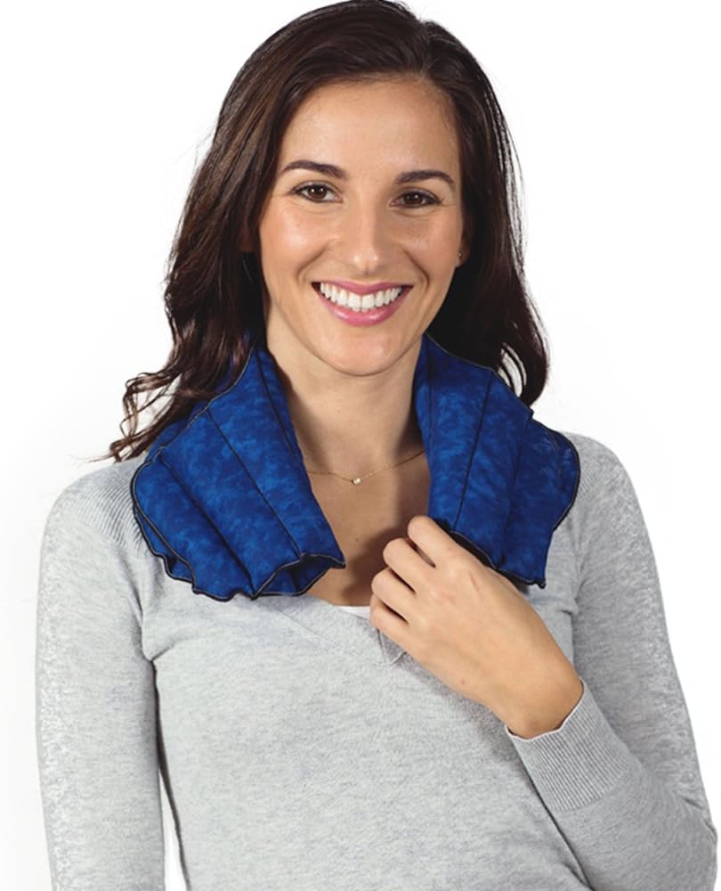 The Kozy Collar is a patented 7 channel non-scented microwave therapy wrap that provides moist heat and cold therapy for relaxation and pain -management. The channeled design allows for maximum heat therapy for relief of Arthritis ,fibromyalgia, Backache, Neck Pain, Migraines, Muscle Aches, Sprains, Pains and more. We offer all of our products with Aromatherapy. We offer the Kozy Collar in two sizes. The Large/Long Kozy Collar has 12 Channels to cover across the shoulders and down the shoulder blades. The regular kozy Collar has 7 Channels and lays flat across the collar bone areas and only a little down the back