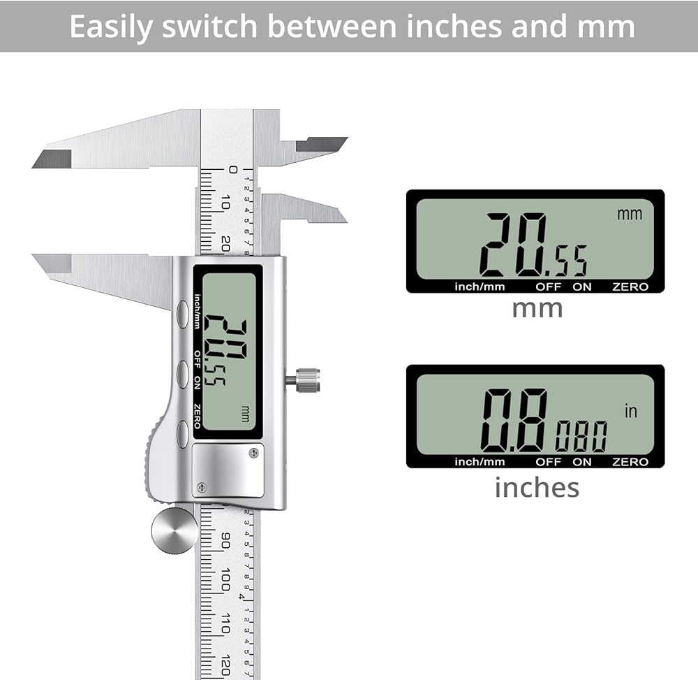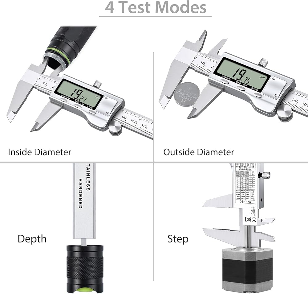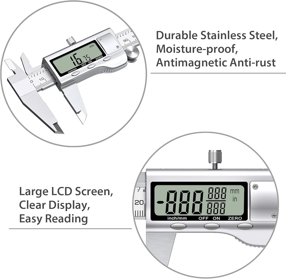 Stainless Steel: Hardened stainless steel shaft with depth-measurement blade, precise internal and external measuring jaws, precision lapping finish electronic digital calipers