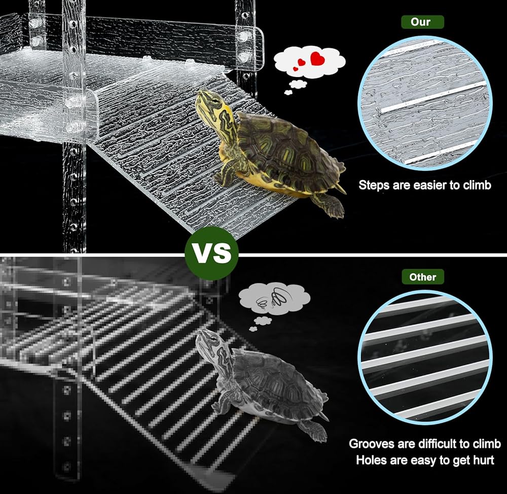 Engraved Steps: non-slip, beautiful, turtles will easily crawl up out of the water and bask.