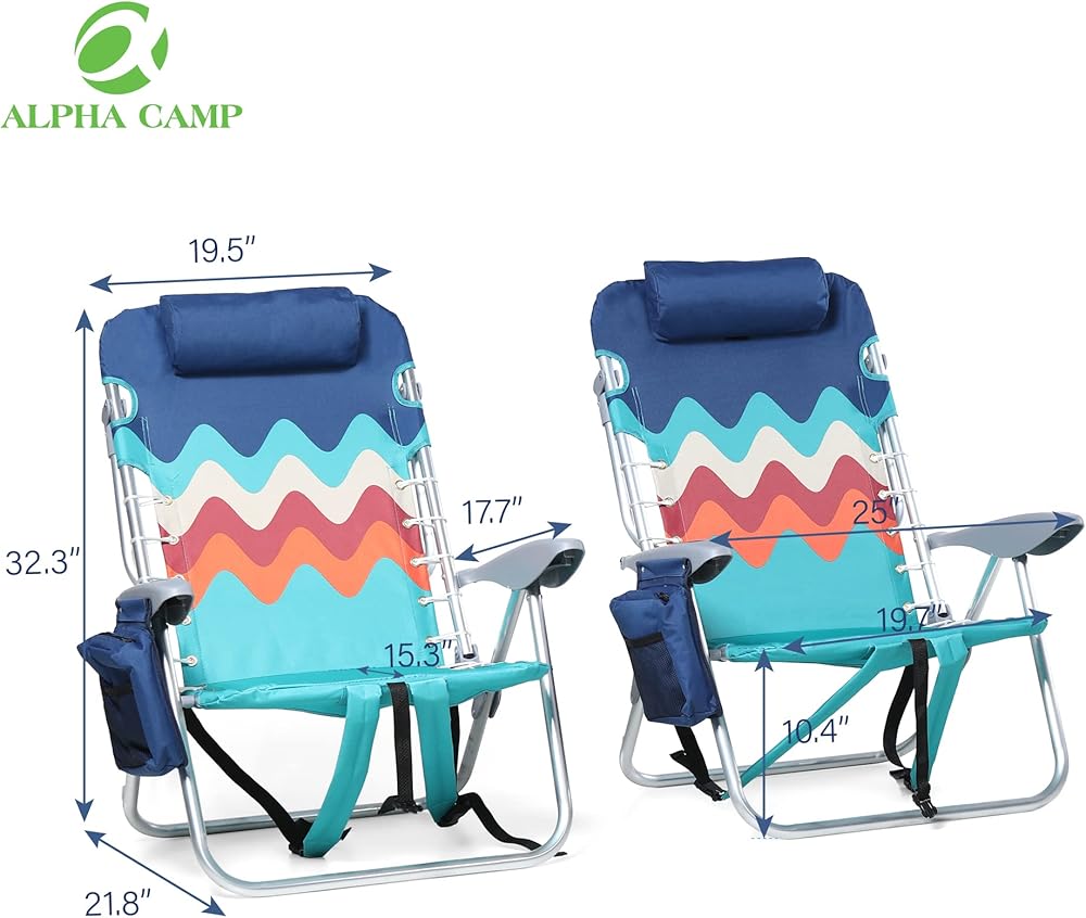 Compact and portable: the adjustable, padded shoulder straps and compact fold make it easy to take anywhere outdoors ,ALPHA CAMP Beach chair offers hands-free portability and is lightweight to carry, making it easy to take with you to the beach, lakefront, or outdoor sporting event