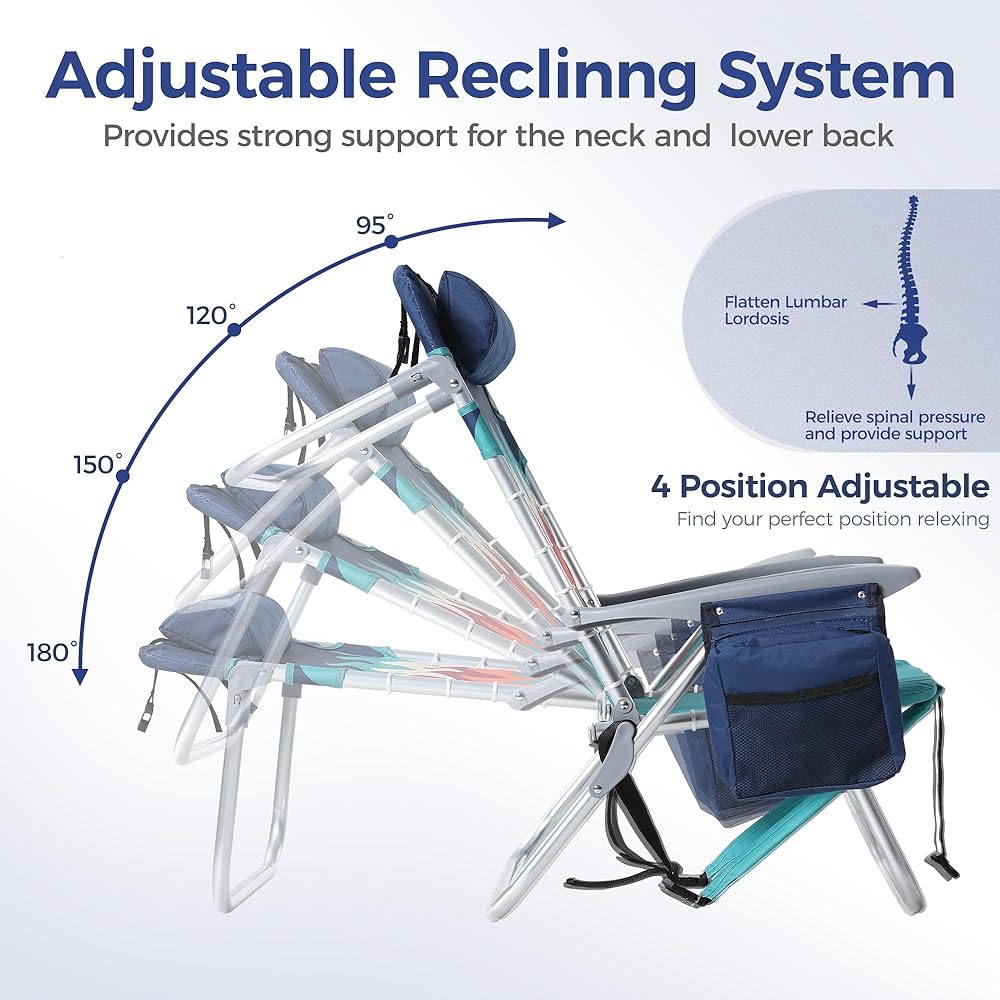 Durable beach chair: 600d Oxford Fabric sturdy and breathable,,22MM aluminum frame is all-weather proof .Weight capacity: 250 lbs. Highlights:Four folding angles are available for use.