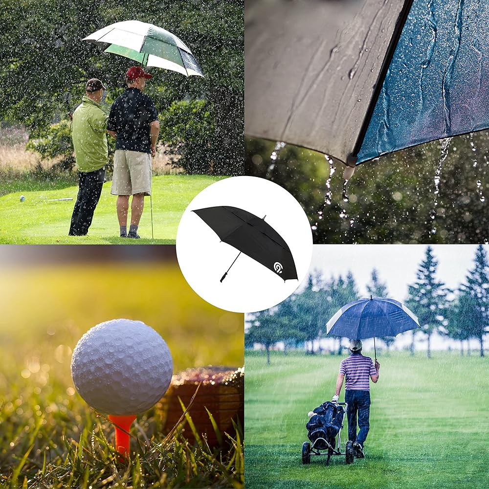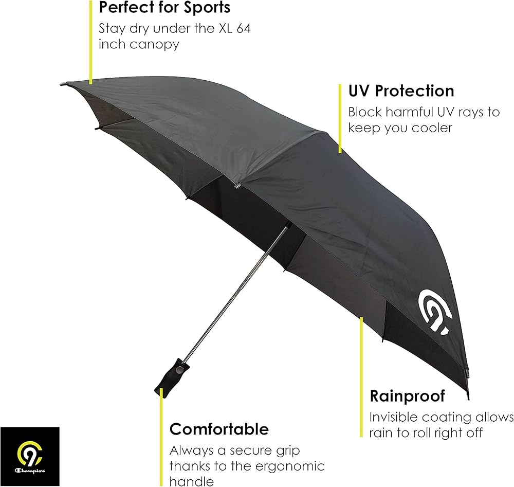 This extra large canopy Golf Stick Umbrella from C9 Champion, provides ultimate protection in rain or shine. Convenient automatic open feature, extra grip handle makes it easy to use in a hurry. Vented canopy prevents umbrella from flipping inside out, while adding extra UV protection from harmful sun rays.