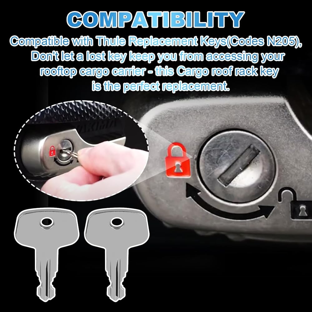 Compatibility:Compatible with Thule Replacement Keys(Codes N205), Don't let a lost key keep you from accessing your rooftop cargo carrier - this Cargo roof rack key is the perfect replacement.