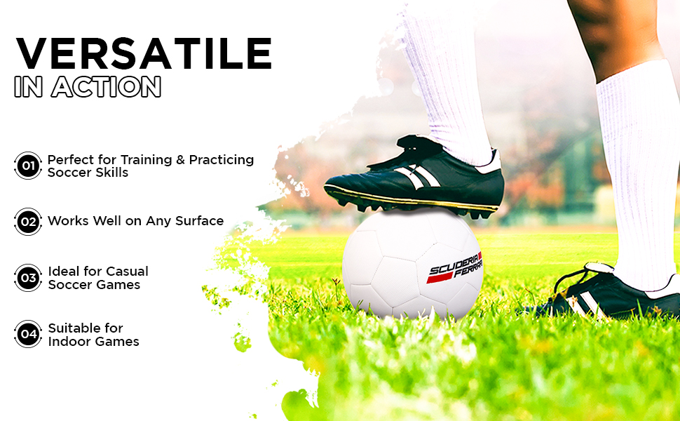 - كرة القدم الرسمية من فيراري، مقاس 5 كرة تدريب للفتيات والأولاد والمراهقين الشباب والبالغين، مخيطة آليًا للعب في الأماكن المغلقة والخارجية