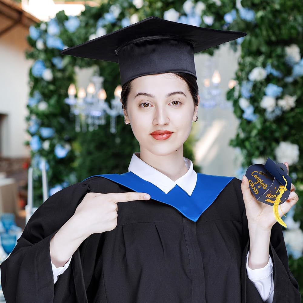 • سهلة التجميع: جميع ديكورات قبعات التخرج معبأة بشكل مسطح ولا حاجة لاستخدام المقص والغراء. ما عليك سوى طي بطاقة ورق كرافت وفقًا للتجاعيد، ووضع العروات في المقبض، وتثبيت الأغطية والشرابات على الجزء العلوي من صندوق هدايا التخرج، وستحصل على صندوق بطاقات تخرج رائع.