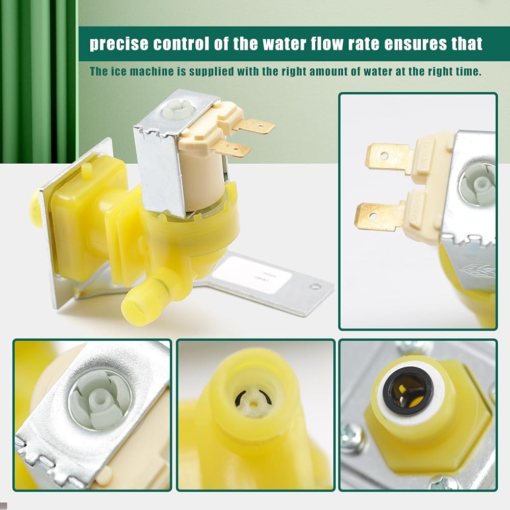 التحكم الدقيق: تم تجهيز مجموعة صمام مدخل الفريزر 000008487 IH9123 33129026 بملف لولبي يسمح بالتحكم الدقيق في معدل تدفق المياه. وهذا يضمن تزويد صانعة الثلج بالكمية المناسبة من الماء في الوقت المناسب.