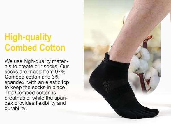 • ✅【جوارب رياضية يومية لأصابع القدم】قطن ممشط 77.4% بوليستر 20.1% سباندكس 2.5%. جوارب بخمسة أصابع مع ضغط، مسامية ومضادة للبثور توفر أفضل أداء رياضي