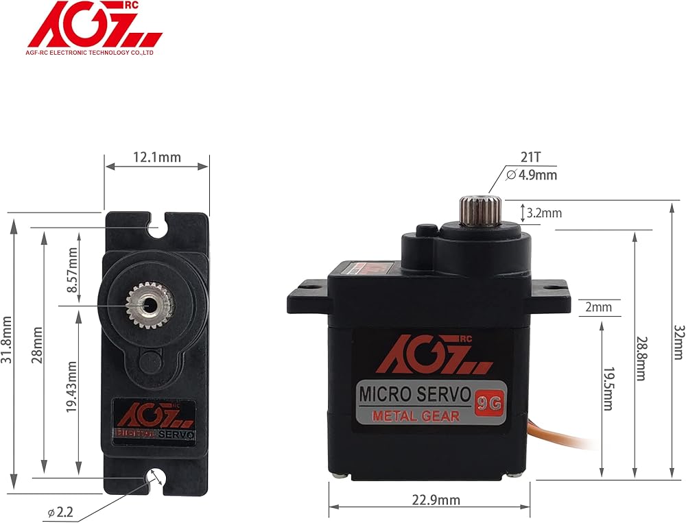 • 【Mini Size & Application】 The dimension of this high voltage digital servo is 22.9*12.8*22mm (0.90 x 0.50 x 0.87 in). It's a good choice for 1/18 scale RC car TRX4M, truck, robot, boat, plane, etc. And it's a good choice for 1/10 1/16 dig servo.