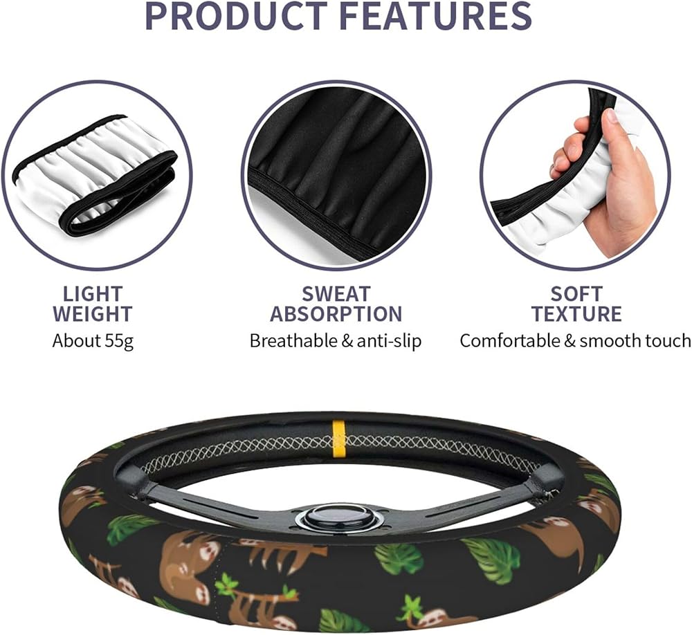 • MATERIAL : Made Of High-Quality Neoprene Sloth Print Steering Wheel Covers, Soft Texture, Breathable And Comfortable To Touch.