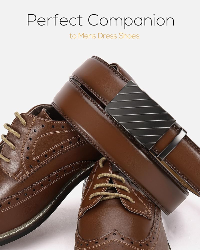 أحزمة CHAOREN بسقاطة للرجال - حزام أسود للرجال 1 3/8 بوصة للفستان الكاجوال - حزام صغير قابل للتعديل يناسب كل مكان