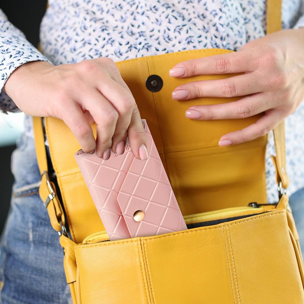 • Fashionable Appearance: Featuring a glossy diamond-patterned PU leather material in charming light pink, our bag is fashionable and suitable for female users, allowing you to maintain an elegant style during the knitting process.