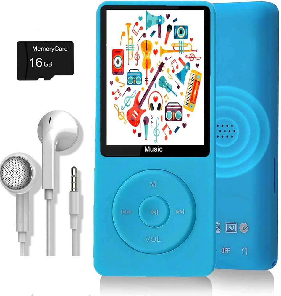 مشغل MP3، مشغل موسيقى مع بطاقة Micro SD سعة 16 جيجابايت، مكبر صوت مدمج/صور/تشغيل فيديو/راديو FM/مسجل صوت/قارئ الكتب الإلكترونية، يدعم حتى 128 جيجابايت