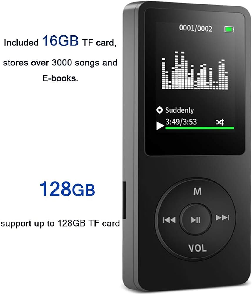 • 【16GB Large Storage】The portable MP3 player comes with a 16 GB micro SD card and support up to 128GB(not included). You could download your favorite songs and videos. Support Multiple Audio Formats, including MP3, WMA, APE, WAV, FLAC and so on.