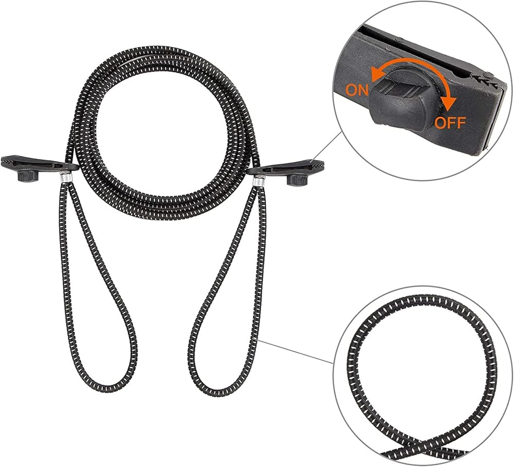 - Two Pcs Tough Tension Cords: 13ft bungee cords for front and 20ft for rear.