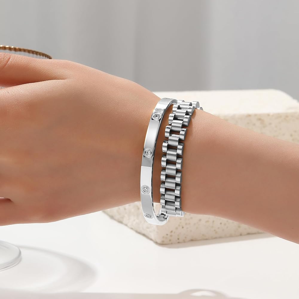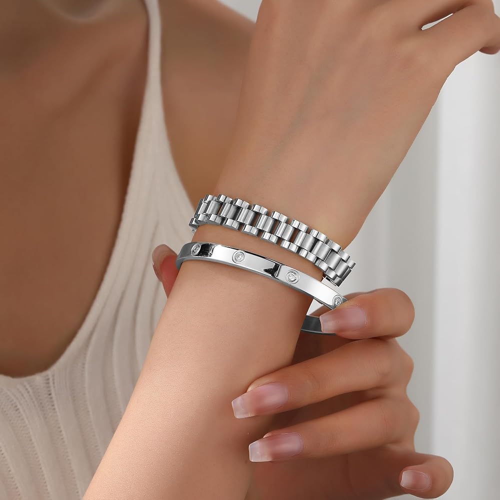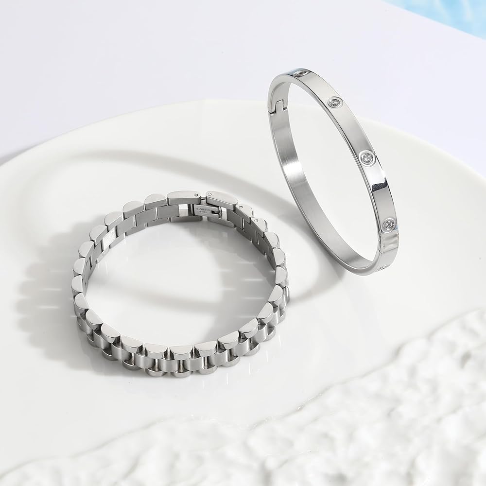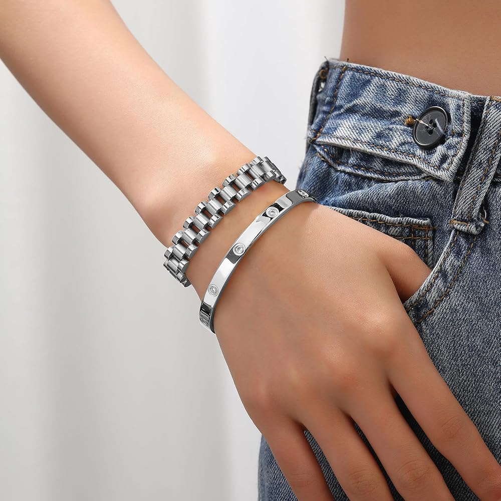 المواد: مصنوعة من الفولاذ المقاوم للصدأ 316L، سيدوم اللون لفترة طويلة، ولن يفقد بريقه أو يتحول إلى اللون الأسود، أو يحول بشرتك إلى اللون الأخضر، ولا يسبب الحساسية. مصقول بدرجة عالية على السطح، ناعم ومريح في الارتداء.