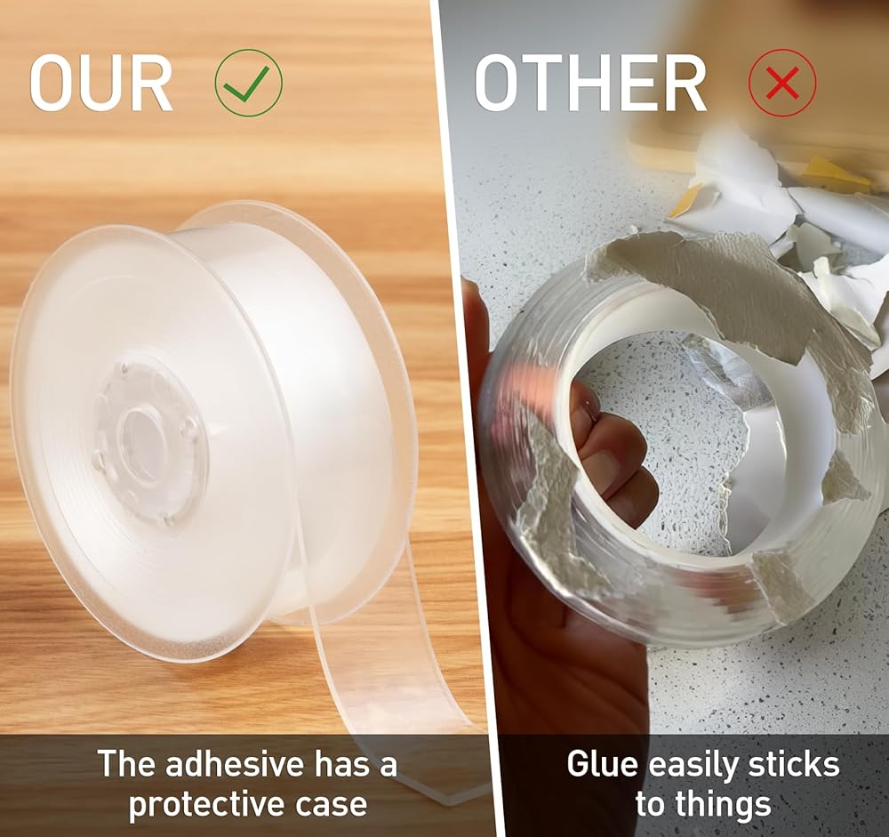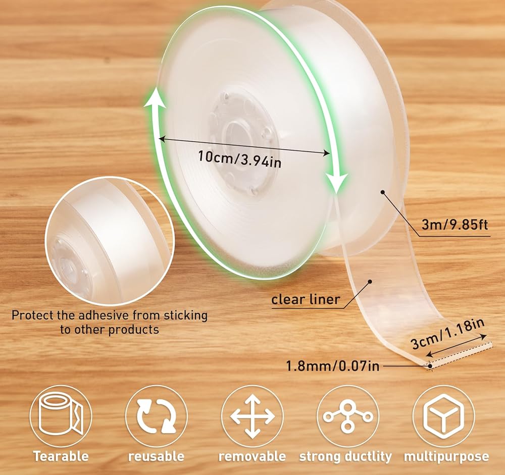 ★قابل للإزالة وخالي من البقايا★ شريطنا القابل للإزالة ذو الوجهين عالي التحمل لا يترك أي بقايا لزجة ولن يلحق الضرر بمعظم الأسطح مثل الزجاج والمعدن والبلاستيك والرخام والخشب وما إلى ذلك عند إزالته. عندما يلزم إعادة استخدام شريط النانو، اشطف السطح بالماء البارد للسماح له بالجفاف بشكل طبيعي وسيتم استعادة التصاق الشريط على الفور.