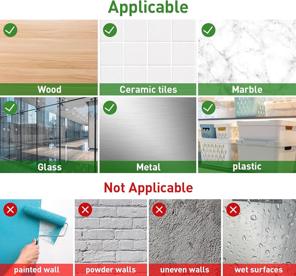 ★الاستخدام على نطاق واسع: الشريط عالي التحمل شفاف ولا يترك علامات، ومناسب لجميع أنواع الأسطح الملساء، بما في ذلك الخشب والبلاط والزجاج والمرايا والمعادن والبلاستيك والألواح الخشبية والرخام والجدران وما إلى ذلك. يمكن إزالته في أي وقت، وسهل التشغيل ولا يترك أي بقايا. (ملاحظات: بسبب الالتصاق القوي لشريط النانو وطبيعة الجدران المطلية، يرجى توخي الحذر عند استخدام الشريط على الجدران المطلية، فقد يتقشر الشريط من الجدار المطلي عند إزالته.)