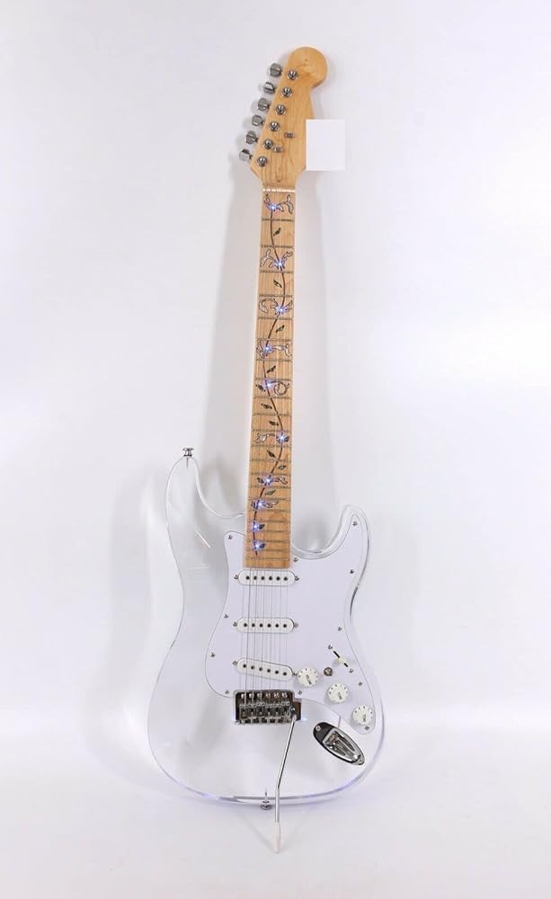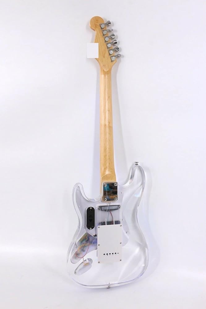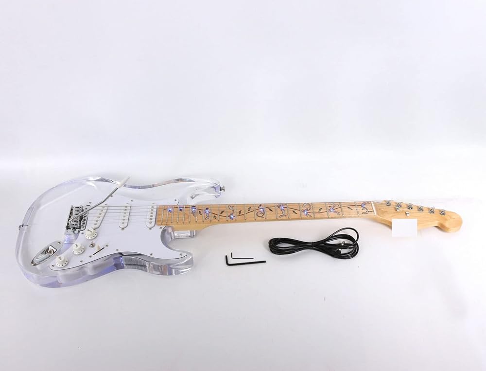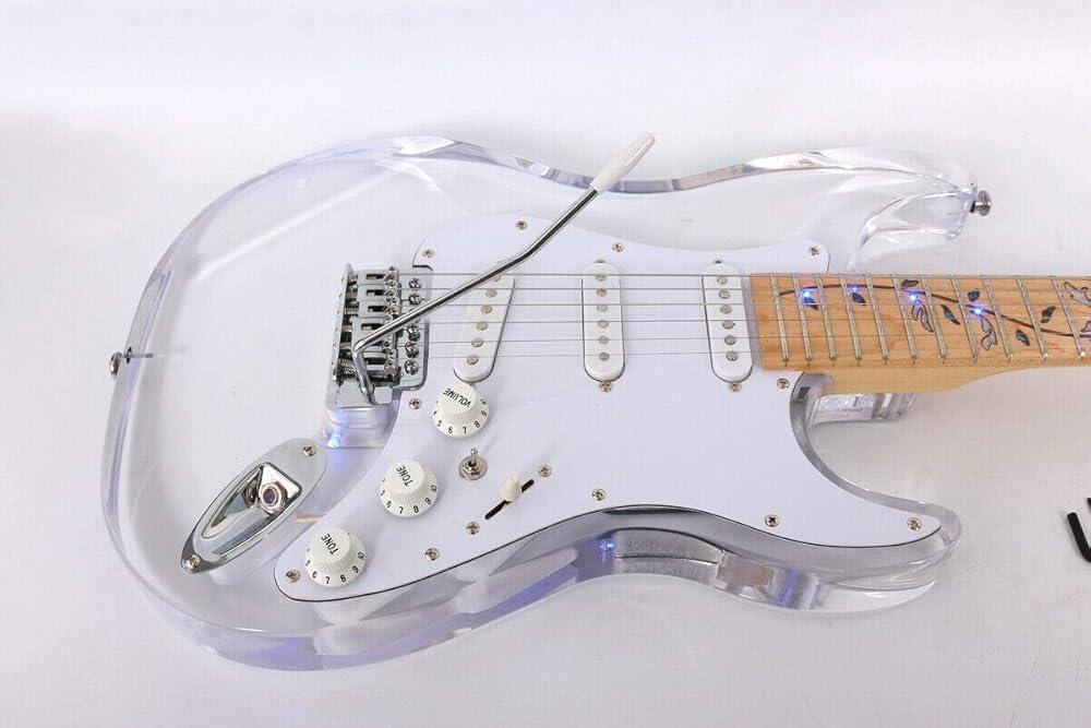 Top Quality DIY LED Light Electric Guitar Acrylic Body Crystal Guitar Blue Color SPECS: Body:Acrylic Neck: Maple Fingerboard : maple Frets: 22 Fret Scale Size : 25.5 Inch Nut:42mm Tuner: same pictures showed Electronic : 1V 2T 5P, 1 swtichs control the LED Light Hardware : Chrome Finish :Nature