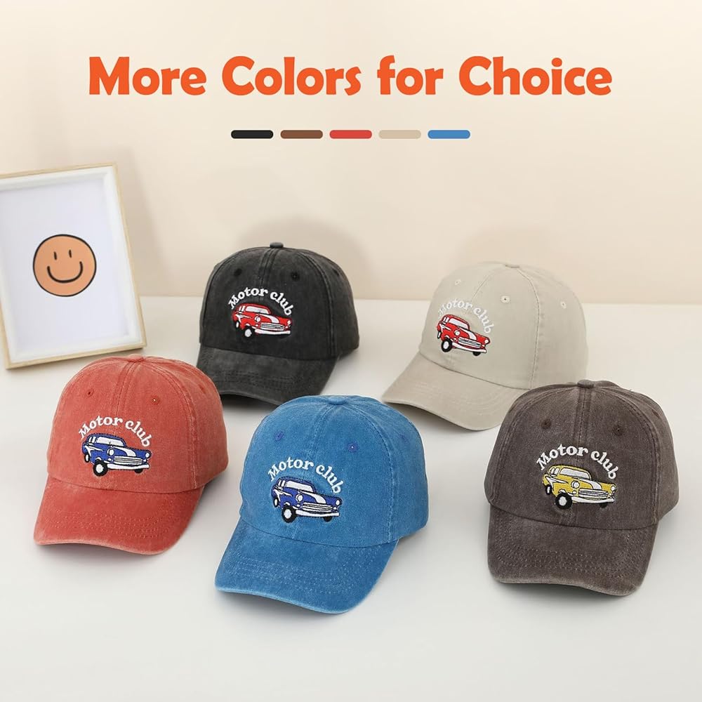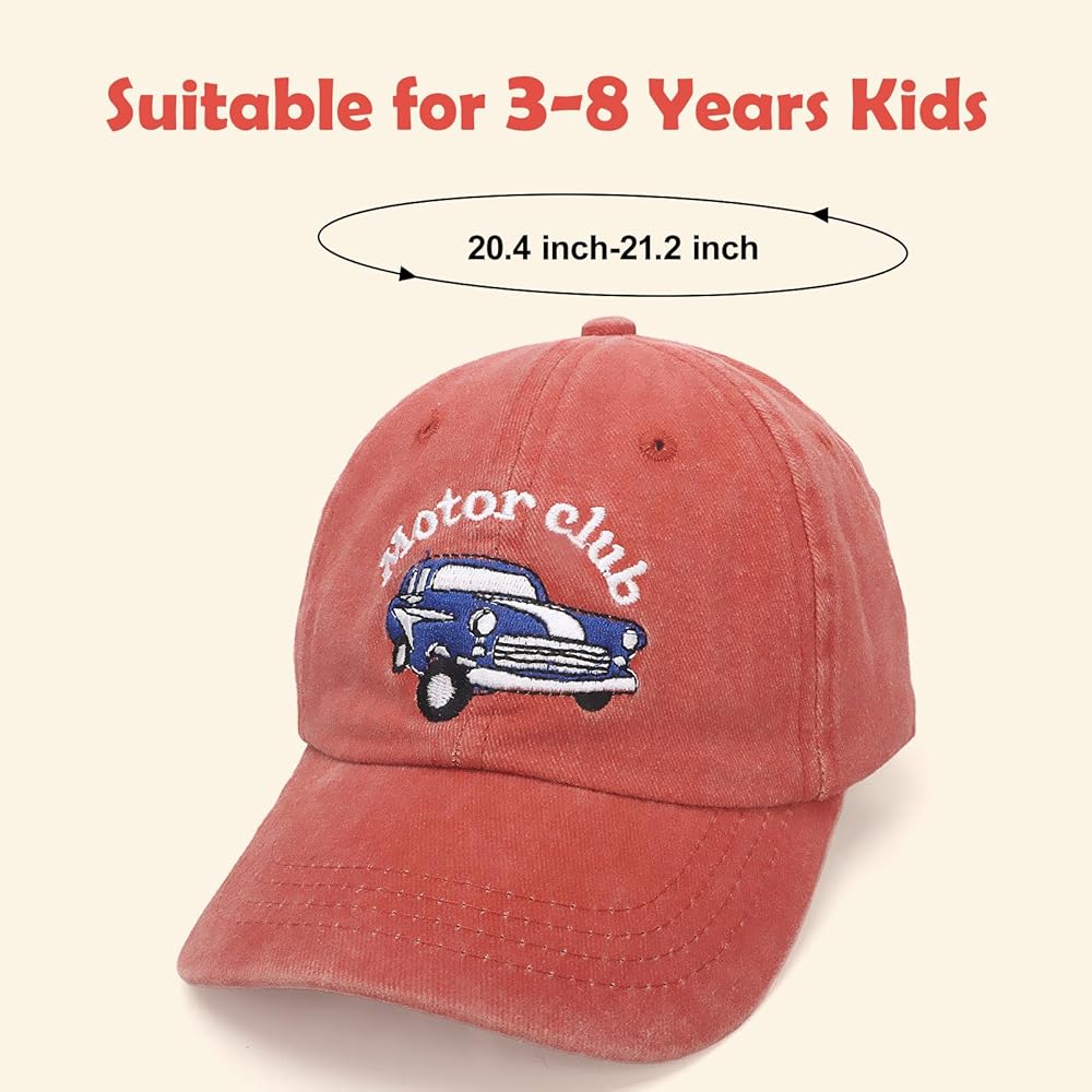 • 【Embroidered Baseball Hats for Kids】:Have a little one that likes Vintage Car? Motor club for Kids is One of the Greatest gift!The Embroidered car pattern Works Like a Real Thing,and will not fade;It Not Only Helps Kids Develop Imagination & Creativity of Vehicles, but Also Inspires Their Interests of Associated Professions;They'll love this sun hat!Top off your kid's outfit with this one-of-a-kind baseball cap! Perfect for a little motor club fans!