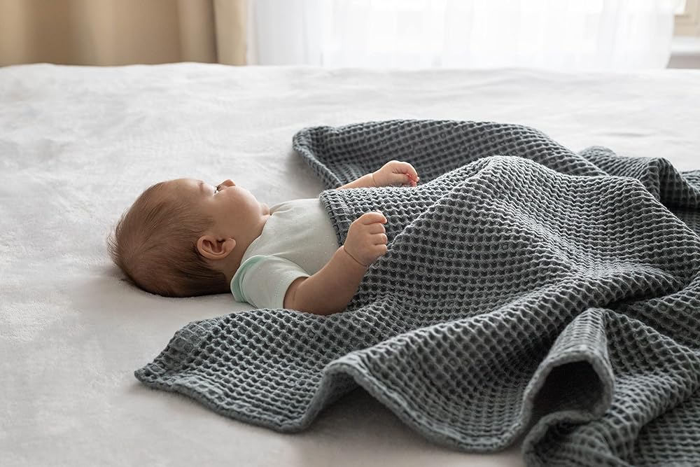 Breathable Cotton Baby Blanket - Parenting can be overwhelming. Save some time with this multi-purpose waffle knit blanket. Use as a receiving blanket, nursing cover, play mat or towel for baby. This versatile cotton waffle blanket is a must-have for any new parent
