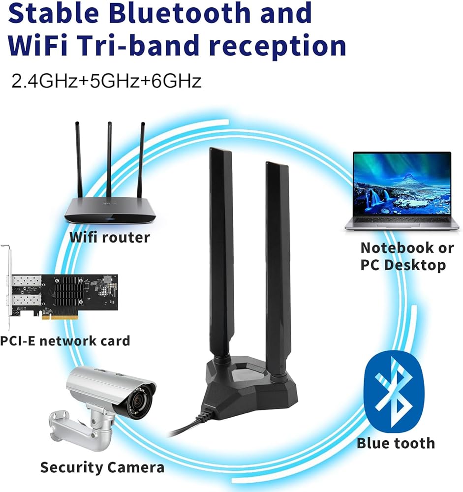 Works with any Router or Wireless Network devices 2.4GHz, 5 GHz, and Wi-Fi 6 6E bands; Support 802.11 ax/b/a/ac/g/wifi 6/wifi 6e;