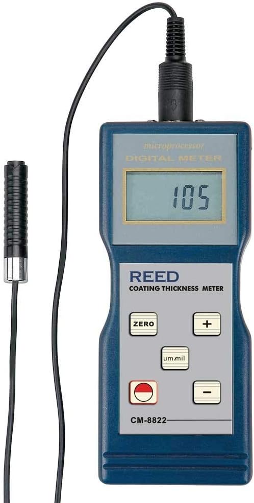 This coating thickness gauge includes ferrous and non-ferrous probes and features a zero button for quick adjustment in the field. The CM-8822 has a large easy-to-read LCD display and basic accuracy of 3%.