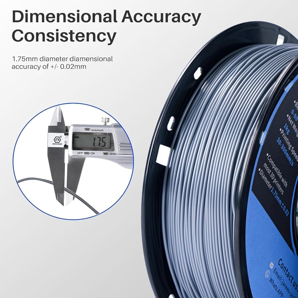 【لون نهائي معدني وجودة عالية】اللون الخاص لخيوط PETG يجلب الفنون والحرف اليدوية والمشروعات ثلاثية الأبعاد سطح فضي معدني أملس مما يعطي بالتأكيد مطبوعات لامعة ولامعة. مع عدم الحاجة إلى التلميع بعد، يمكنك تصميم المطبوعات على الفور باستخدام معدن ديناميكي يشبه النهاية. إنها مناسبة جدًا لطباعة الديكور أو الهدايا لجميع أنواع المهرجانات والحفلات التنكرية. هذه الخيوط مضادة للاعوجاج، ودقة عالية، ولا توجد فقاعات، ولا تشويش ولا رسم.