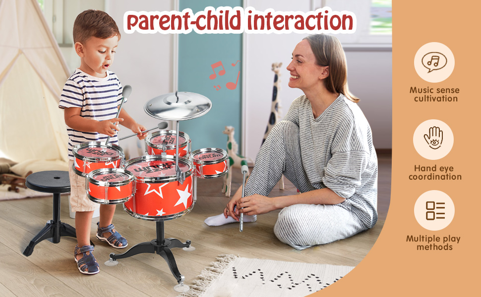 【ألعاب تعليمية موسيقية تعليمية】لمساعدة الأطفال على زيادة اهتمامهم بالآلات الموسيقية في المرحلة المبكرة، نقدم مجموعة طبول قيمة رائعة. تم تصميم مجموعة طبول الجاز للأطفال مع وضع الترفيه والتعليم في الاعتبار. عندما يتعلم طفلك التحكم في إيقاع الطبول، سيطور الأطفال الصغار أيضًا المهارات الأساسية مثل التنسيق بين اليد والعين والمهارات الحركية الدقيقة.