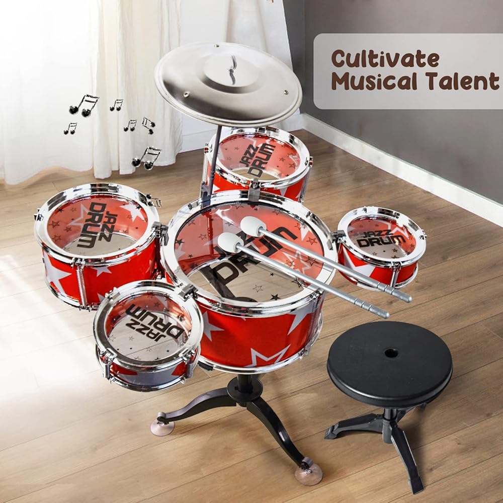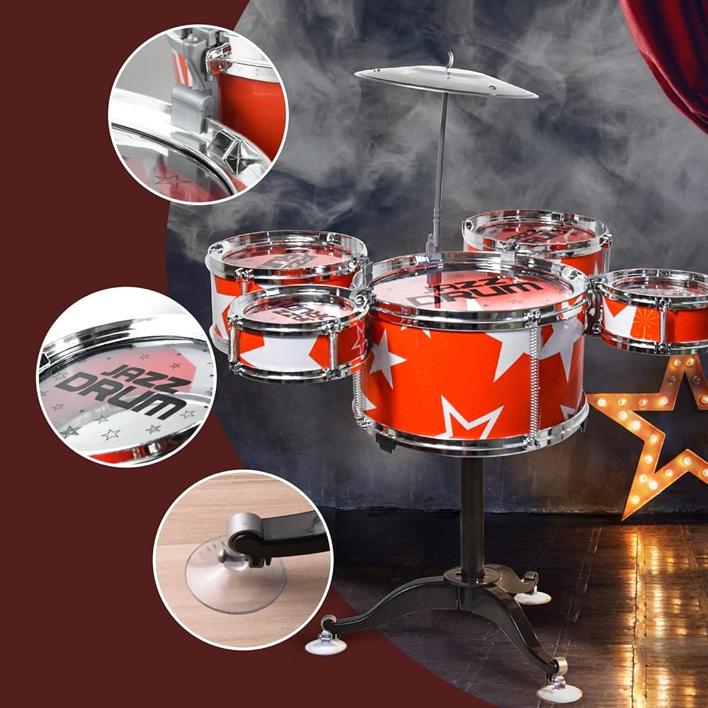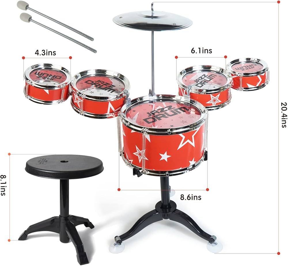 【سهلة التجميع】قد يستغرق الأمر من 5 إلى 10 دقائق فقط للوصول إلى مجموعة طبول الأطفال الرائعة للغاية! مصنوعة من مواد سبائك عالية الجودة، لا تقلق بشأن السقوط بسهولة. يمكنك العمل مع طفلك لتدريب قدرته اليدوية. يبلغ حجم مجموعة الطبول للأطفال حوالي 17.2 × 11.6 × 21.6 بوصة