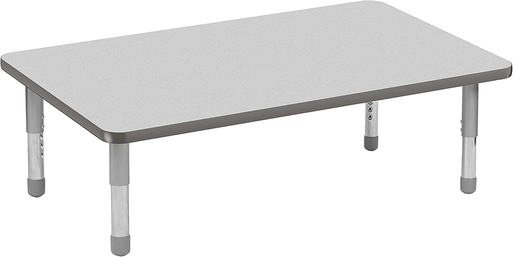 طاولة أطفال مستطيلة للأنشطة 10098-GYGT من Factory Direct Partners (30 بوصة × 60 بوصة) أرجل أرضية فضية قصيرة، مساحات تعاونية في المنزل والفصول الدراسية، ارتفاع قابل للتعديل 11-16 بوصة (جزء علوي رمادي/حافة رمادية)