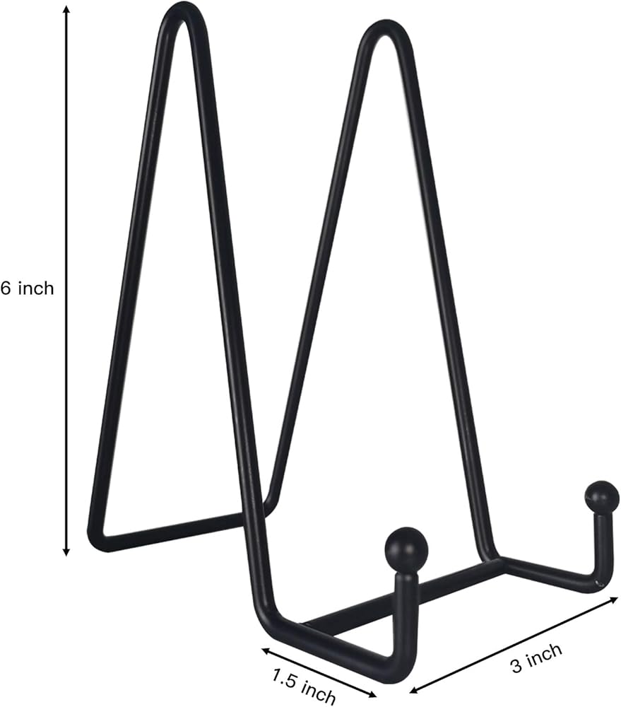 صغير ولكن متين: حامل اللوحة مصنوع من معدن عالي الجودة لن يكون من السهل ثنيه للخلف أو السقوط ويضمن عمر خدمة طويل. السطح مطلي بطبقة نهائية سوداء غير لامعة بحيث يمكن أن يمنع حامل إطار الصورة من الصدأ. كل حامل لوحة مزخرفة من الحديد لامع وأنيق في المظهر، مما يجعله حاملًا مثاليًا لعرض العناصر المفضلة لديك أو المشروعات اليدوية.