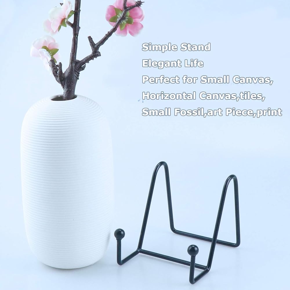 متعددة الاستخدامات: تتميز حاملات عرض الحامل بأنها رائعة من حيث الطراز، والتي يمكن أن تعزز الجو الفني لغرفتك، وعملية للاستخدام لدعم اللوحات المزخرفة، والبلاط المطلي، والهدايا التذكارية، وبطاقات العمل، وبطاقات العرض، والبطاقات البريدية، والصور، والقماش، والأطباق، والأطباق والألبوم وما إلى ذلك، مناسب جدًا لسطح الطاولة لعرض أعمالك الفنية! طريقة بسيطة وأنيقة.