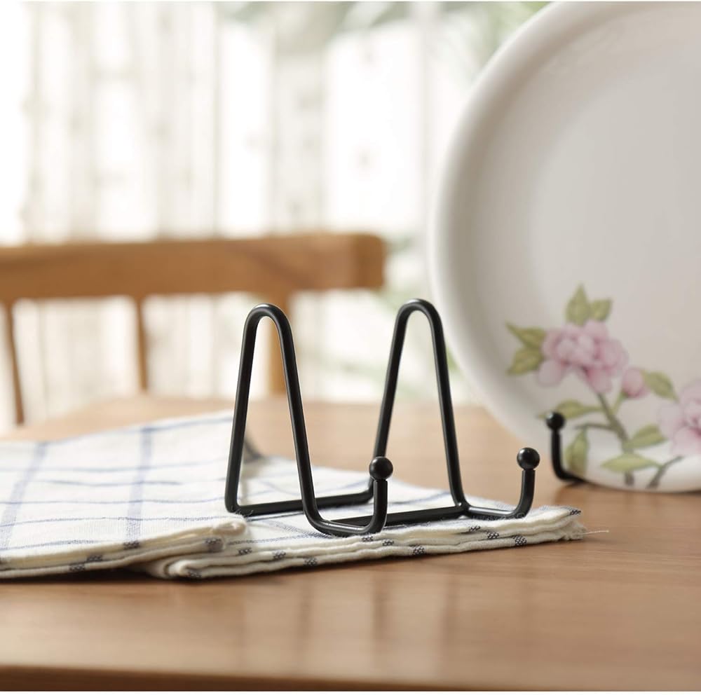مظهر أنيق: حامل لوحة مصمم بسلك أكثر سمكًا بمظهر كلاسيكي، كل حامل لوحة مزخرفة من الحديد لامع وأنيق في المظهر، اعرض فنونك على الحامل بزاوية رقيقة لطيفة. يحافظ نمط حامل الأطباق هذا على مستوى الطبق أقرب إلى السطح دون الانزلاق أو الانقلاب، مما يضمن سلامة مجموعاتك وفي النقطة المحورية.