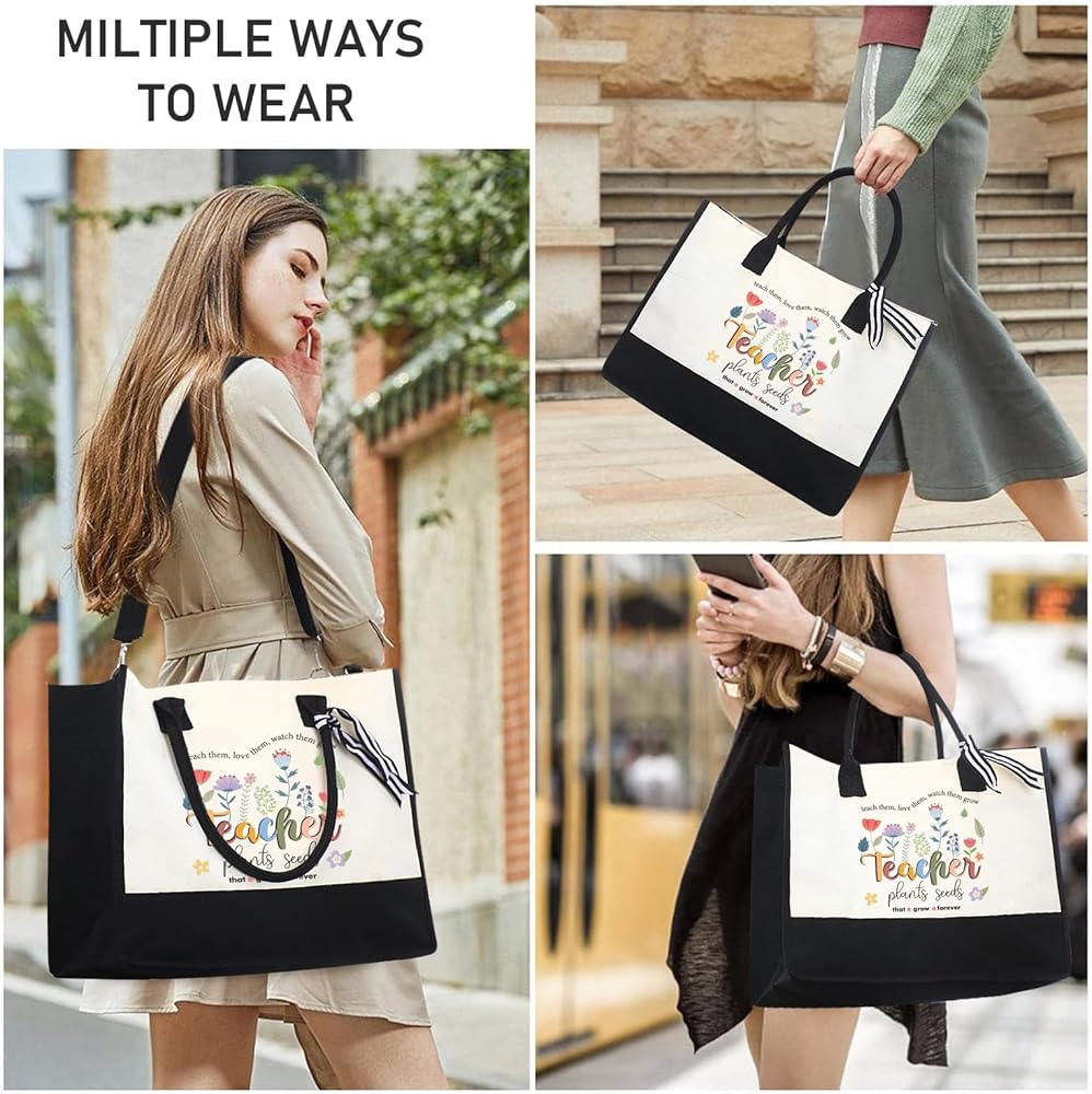 [سعة كبيرة، متعددة الاستخدامات]: حقيبة اليد القماشية هذه (17 بوصة × 13.6 بوصة × 6.5 بوصة)، مزينة بطبعات 60 و1964، لا تتميز فقط بجزء داخلي واسع لاستيعاب الضروريات اليومية ولكنها أيضًا مصممة للاستخدام متعدد الاستخدامات، وتلبي المتطلبات سواء كان ذلك لقضاء يوم على الشاطئ أو السفر أو العمل أو التسوق اليومي، فإن حقيبة اليد هذه هي الخيار المناسب. تتميز بسحاب لمزيد من الأمان، فهي الخيار المثالي لمجموعة متنوعة من المواقف.