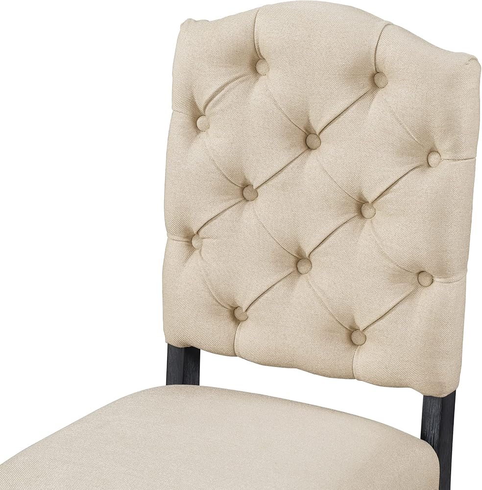 💕【Solid Rubber Wood Frame】- The weight capacity of the table and one piece of chair is separately 300 lbs and 250 lbs. The main structure of the dining table set, including table and chairs, is made of solid rubber wood to ensure stability in daily use. Four chairs use woven fabric as the wrapping material for seat cushion, and the 100% polyurethane foam pad as the filler, thus providing you unusually comfortable sitting experience.