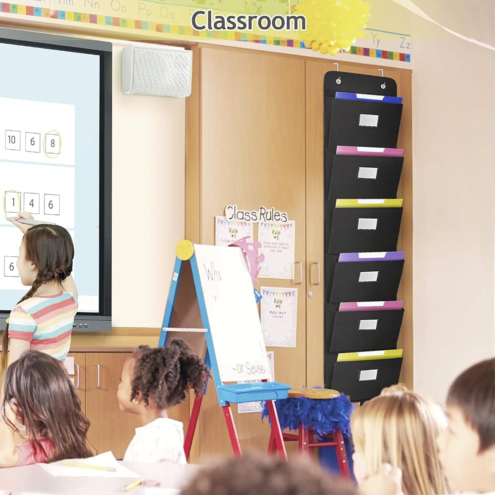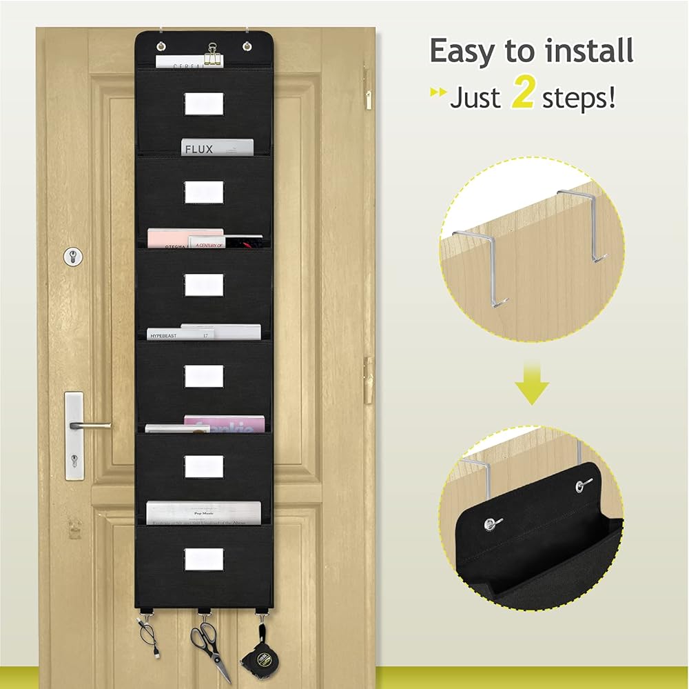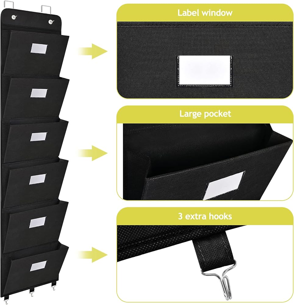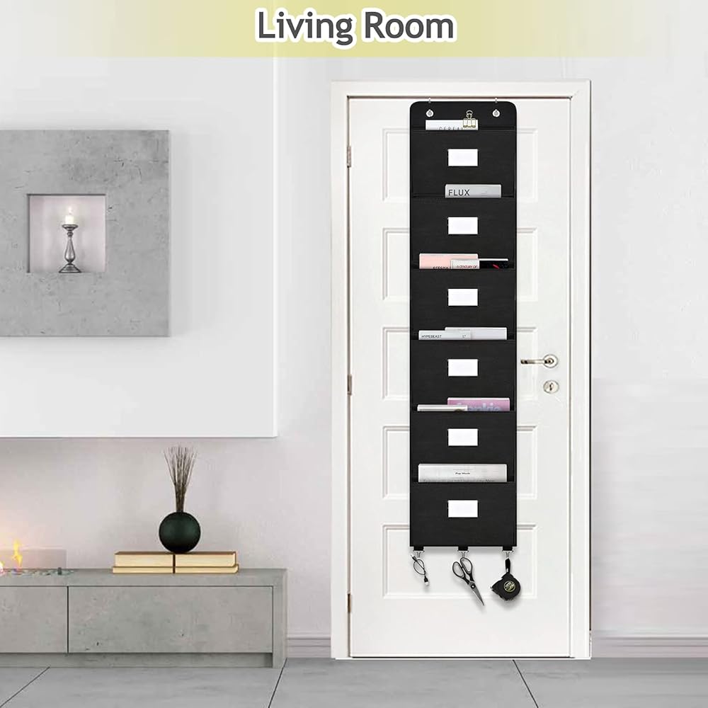منظم ملفات على الباب من Coastal Rose، 6 جيوب، حامل منظم للبريد، حامل للتعليق على الحائط، منظم تخزين مجلدات الملفات للمكتب، المنزل، الورق، المستندات، الرسم البياني (أسود)