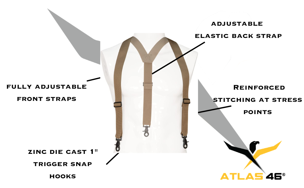 متينة - خياطة معززة عند نقاط الضغط. هيكل من نسيج البوليستر مقاس 1.5 بوصة. ثلاثة خطافات زناد من الزنك مقاس 1 بوصة