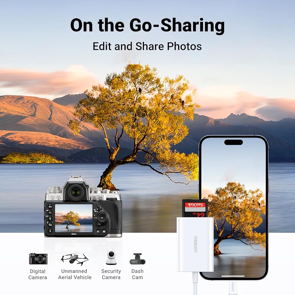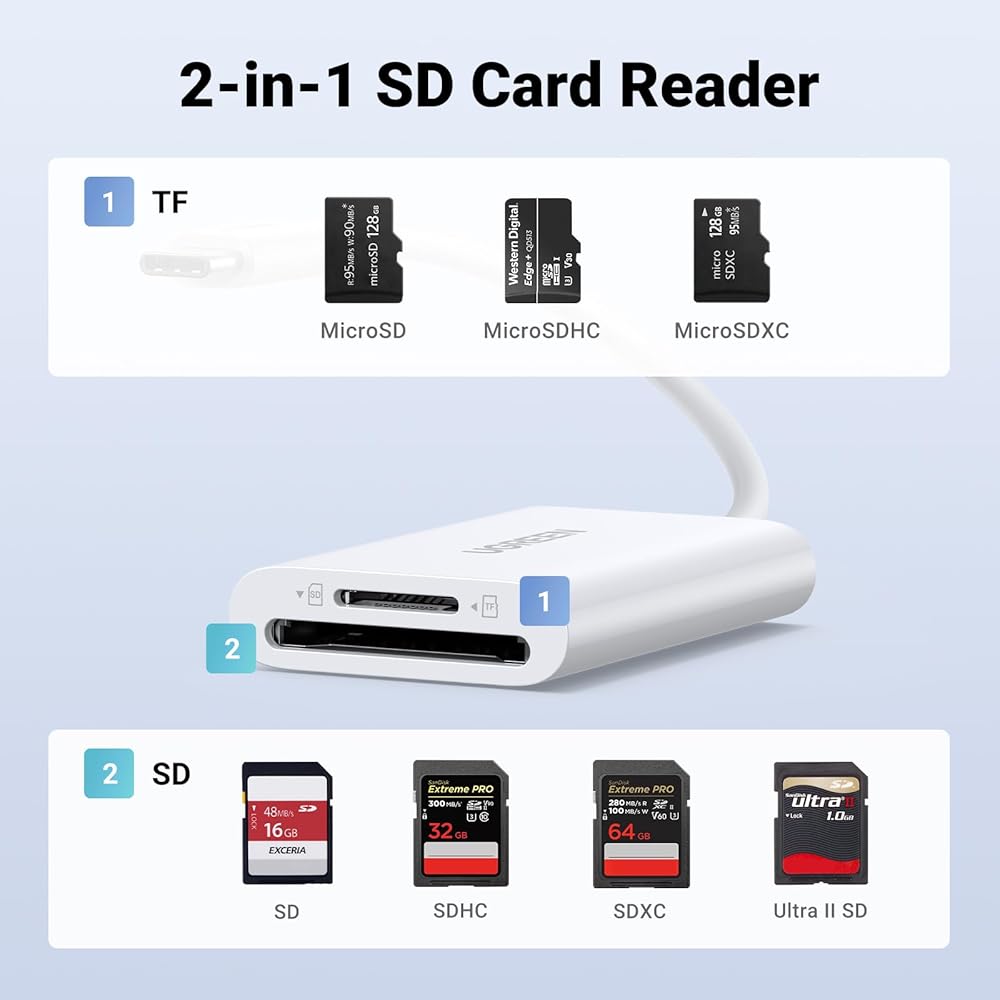 قارئ بطاقات SD من UGREEN USB C، قارئ بطاقة ذاكرة من النوع C عالي السرعة محول قارئ بطاقات Micro SD 170 ميجابايت/ثانية متوافق مع iPhone 15 Pro Max iPad Pro MacBook Pro/Air Samsung Galaxy Android