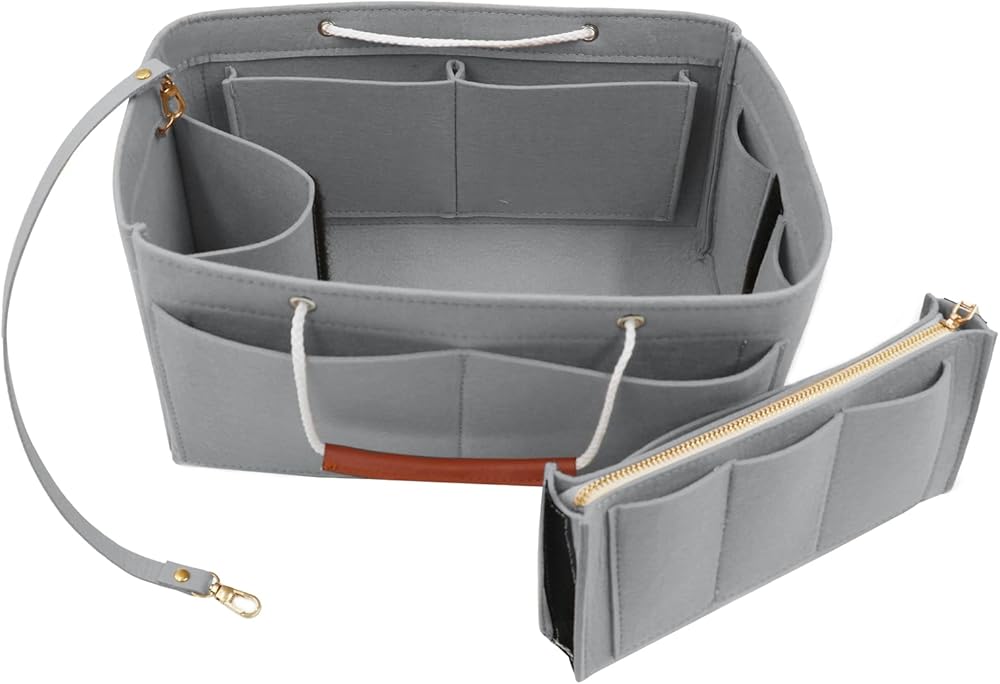 【مادة متينة وسلسلة مفاتيح】منظم الحقيبة مصنوع من نسيج اللباد القوي، ناعم وخفيف الوزن. سلسلة مفاتيح طويلة قابلة للفصل تساعد في العثور على المفاتيح بسهولة وهي طويلة بما يكفي للوصول إلى الباب.