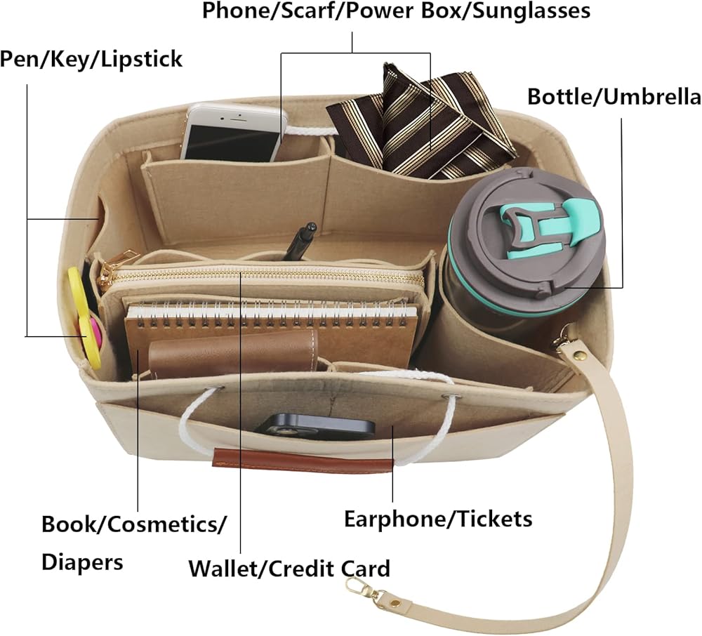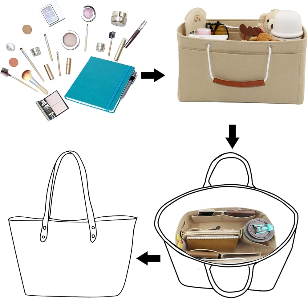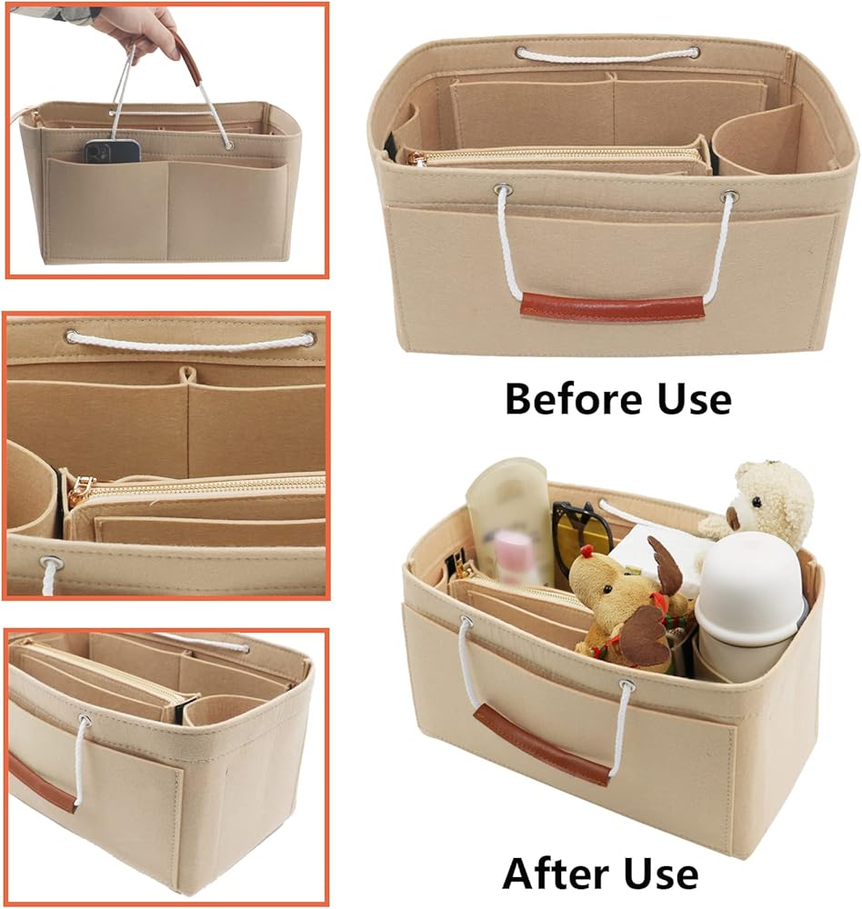 【منظمات حقائب اليد الوظيفية】حافظ على محفظتك وحقيبتك وحقيبة يدك في الشكل وشكل الشحن. يمكنك استخدامه كمنظم لحقيبة الحفاضات لتخزين الحفاضات الصغيرة؛ استخدميها كمنظم لحقيبة المكياج لجمع مستحضرات التجميل الصغيرة؛ كمحفظة لحمل البطاقات للرجال.