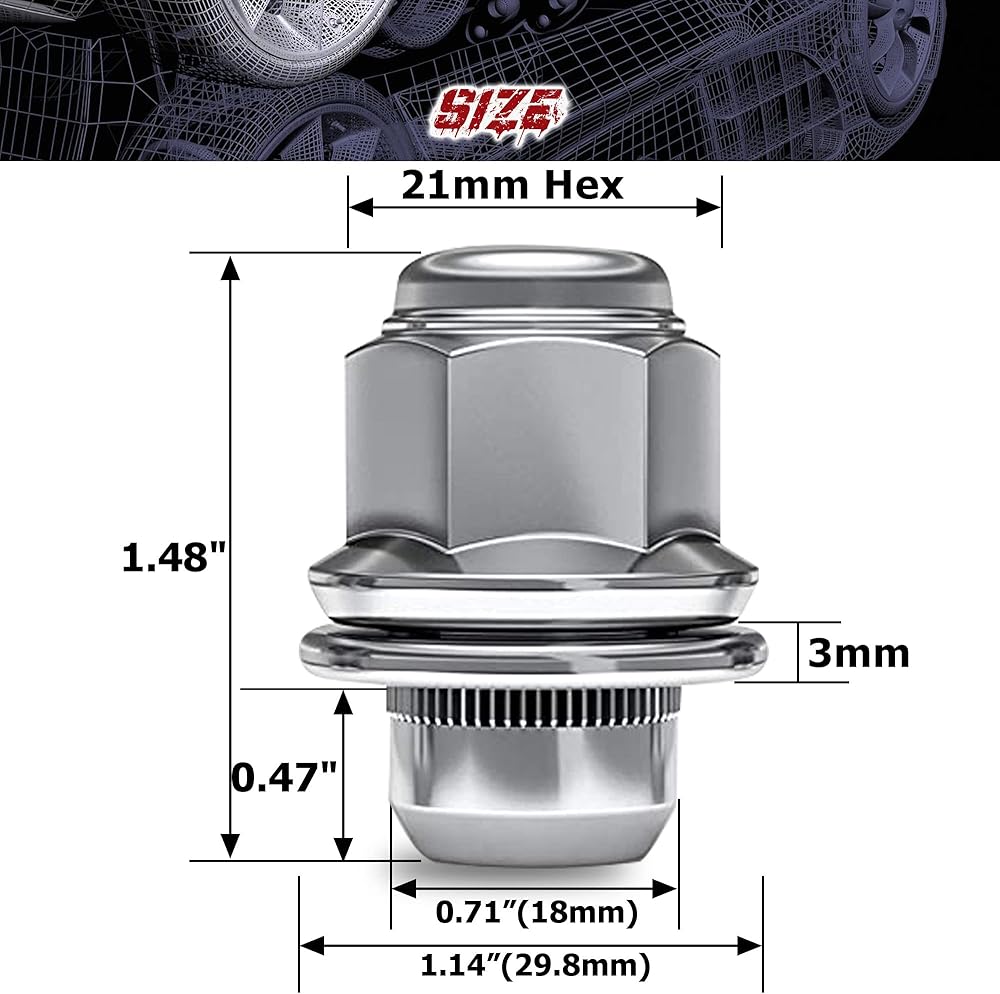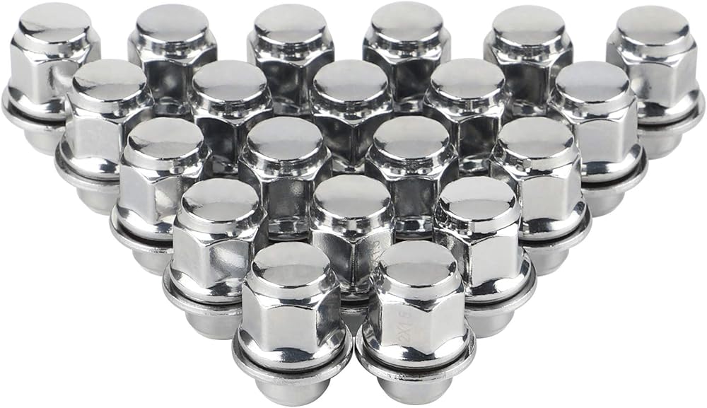 20 قطعة من Richeer 1.48 بوصة 12x1.5 صواميل عروة مقعد من الكروم، 12x1.5 OEM/مصنع صواميل عروة 0.83 بوصة (21nn) سداسية متوافقة مع Civic Element HR-V Escape Sierra
