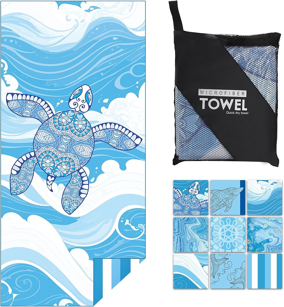 【كبيرة جدًا ومطبوعة على الجانبين】تبلغ أبعاد منشفة الشاطئ الخاصة بنا 71 بوصة × 32 بوصة، مما يوفر تغطية واسعة لجسمك بالكامل، مما يضمن تجربة مريحة سواء كنت على الشاطئ أو تستلقي على كرسي الشاطئ. تتميز بطباعة أنيقة على الوجهين بتصميمات مثل السلاحف البحرية والماندالا والكثبان الرملية والدلافين، وتضيف ألوانًا نابضة بالحياة وتُظهر ذوقك الفريد في الموضة، مما يعزز أيام الشاطئ الخاصة بك بألوان مفعمة بالحيوية.