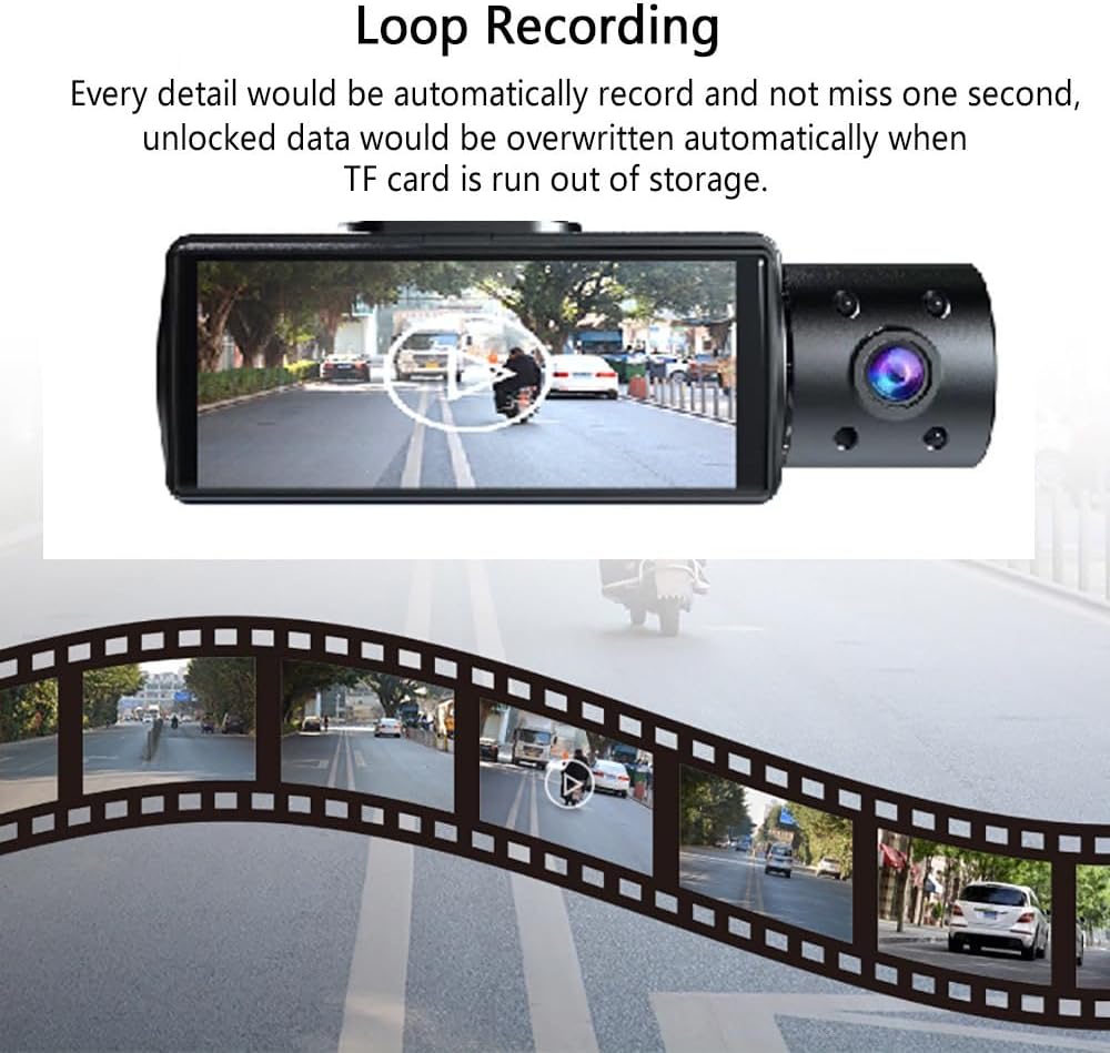 【تسجيل دوري تلقائي 】تسجيل دوري تلقائي كامل، يغطي أول فيديو عندما تكون بطاقة الذاكرة ممتلئة، حفظ فيديو جديد دون انقطاع دون تخطي الإطارات، صورة واضحة دون تأخير، مما يضمن عدم تسجيل الفيديو في كل نقطة، وتجنب حقًا ثواني ضائعة.