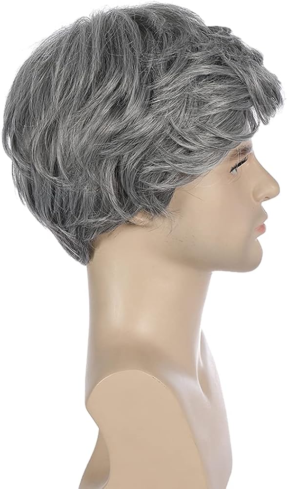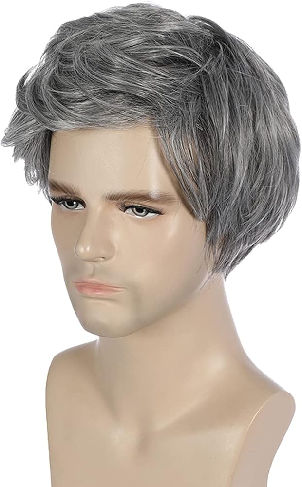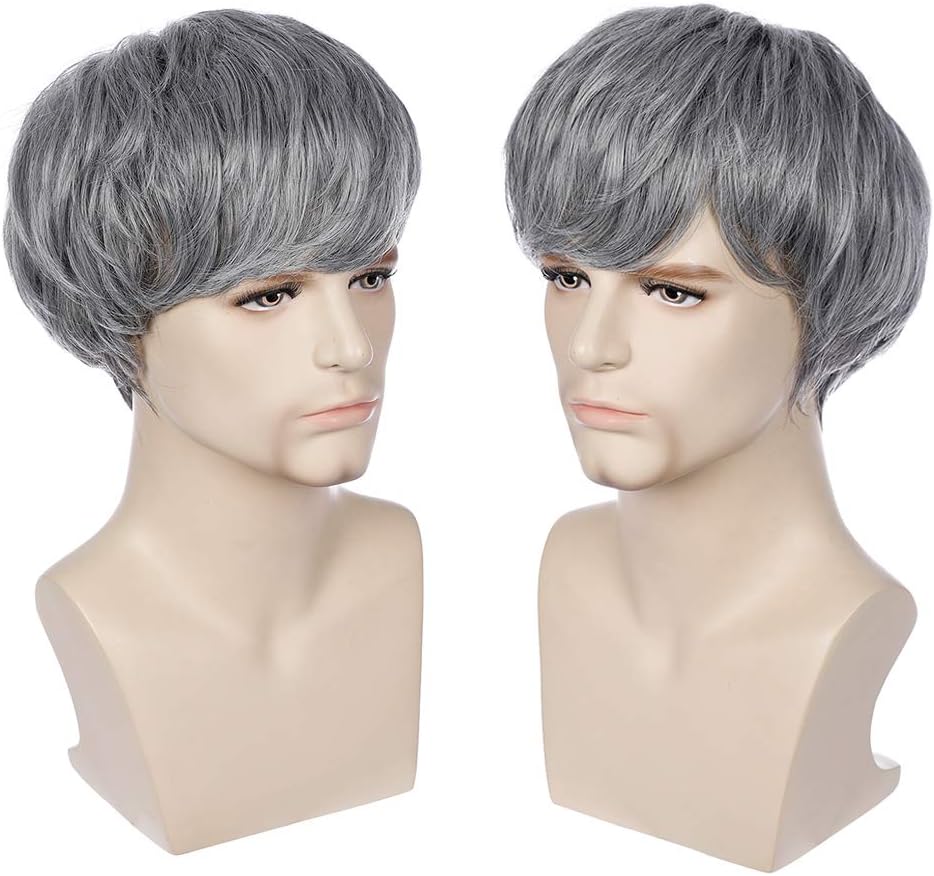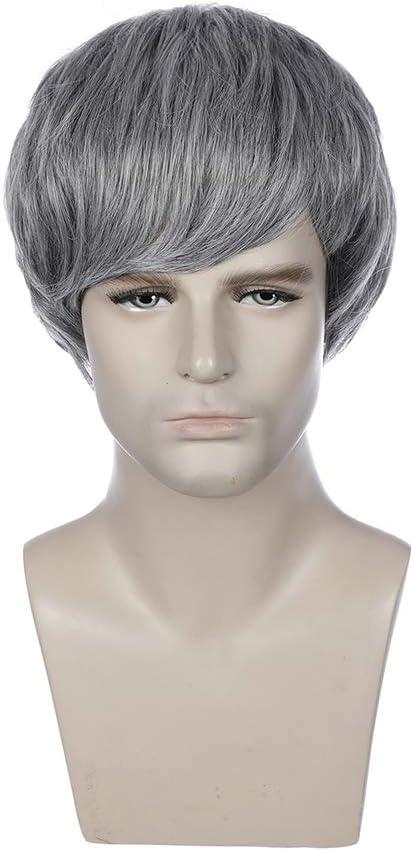 بيرون شعر مستعار رمادي للرجال قصير مستقيم شعر مستعار بارد للرجال والفتيان قصير رمادي شعر مستعار تأثيري رمادي شعر مستعار للاستخدام اليومي (رمادي الحليب)