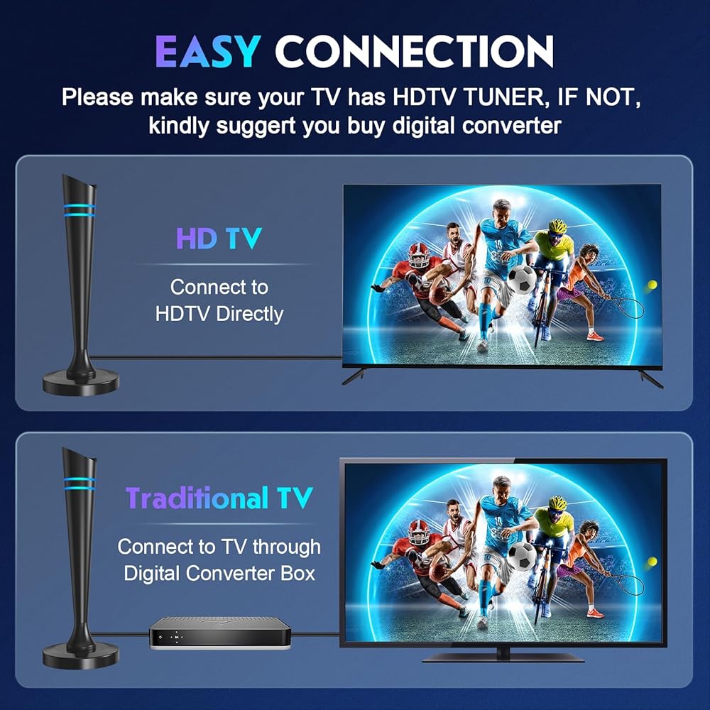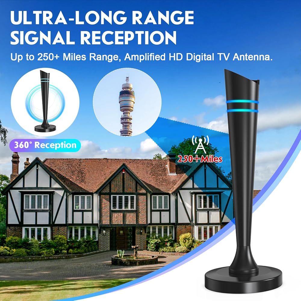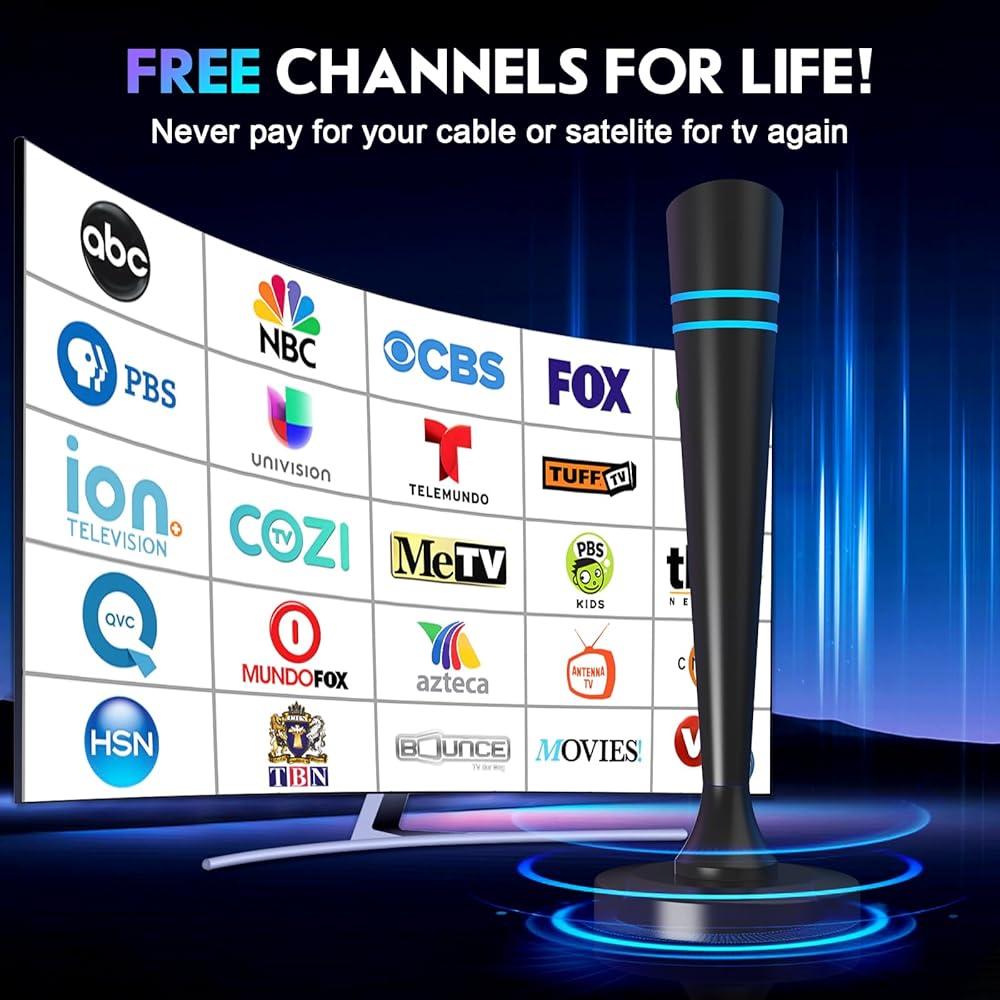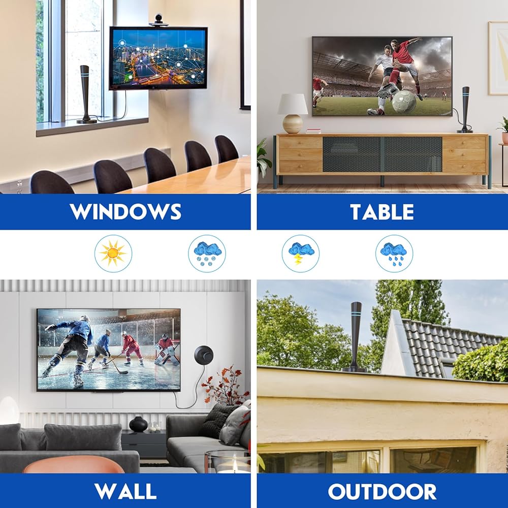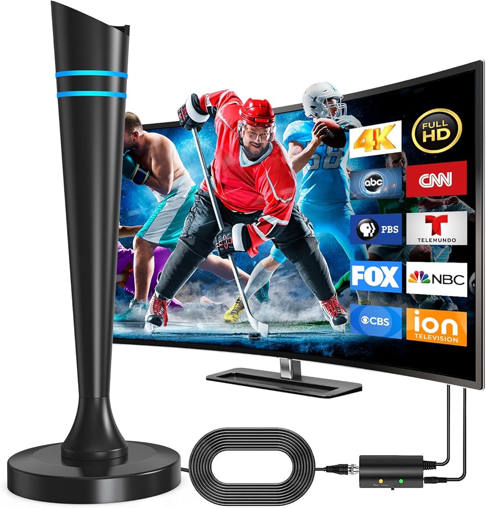 هوائي تلفزيون رقمي عالي الدقة 2024 داخلي وخارجي للتلفزيون الذكي، هوائي تلفزيون للقنوات المحلية، معزز إشارة الاستقبال 360 درجة، يدعم عصا تلفزيون Fire 4K 1080p وجميع أجهزة التلفزيون - كابل Coax HDTV بطول 16 قدم