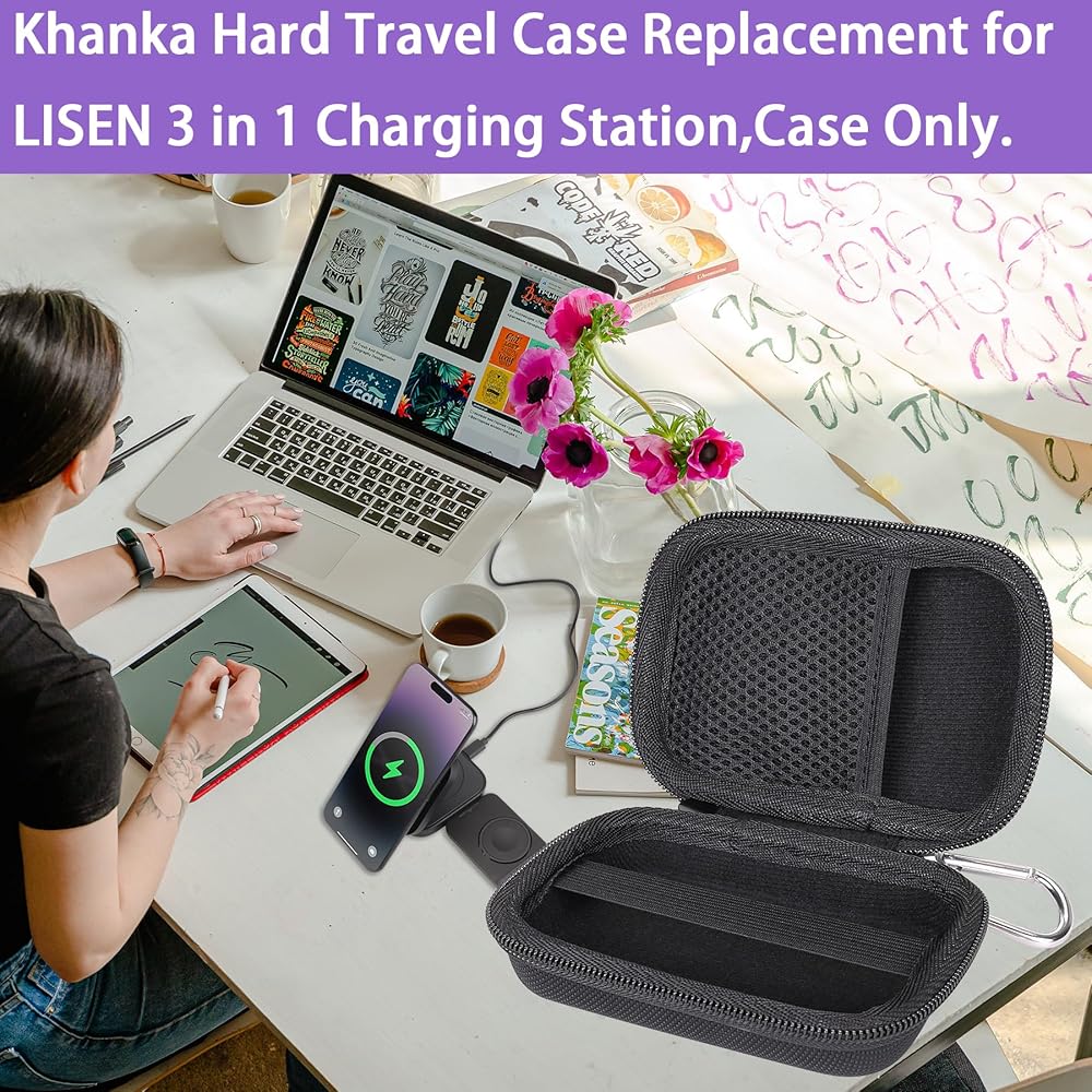 حقيبة سفر صلبة بديلة من khanka لمحطة شحن LISEN 3 في 1، محطة شحن لاسلكية للسفر لأجهزة متعددة، حافظة فقط (أسود).