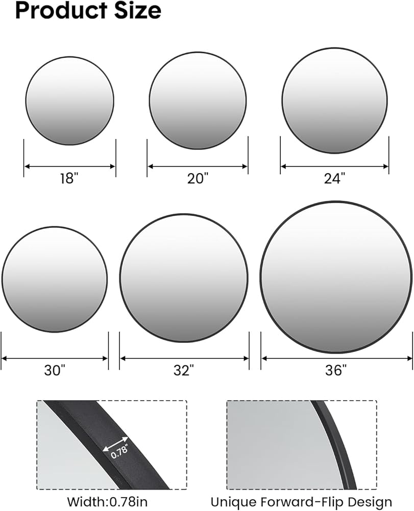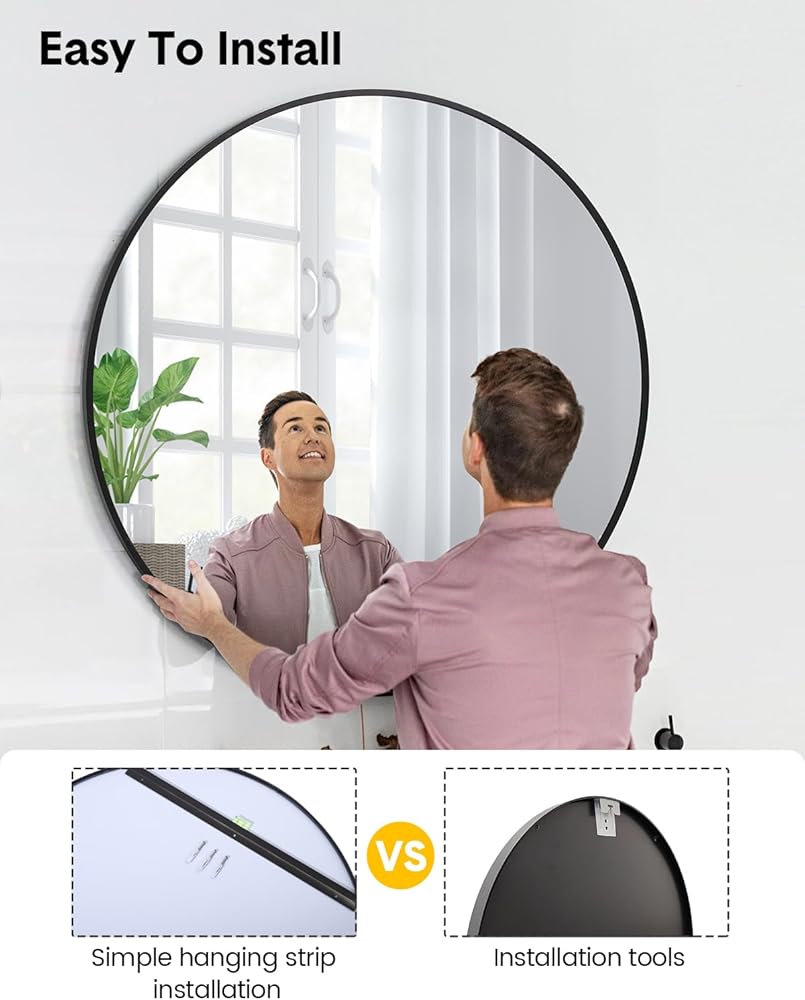 • 4. سهولة الإعداد: تأتي هذه المرآة مع جميع التركيبات الأساسية والتعليمات الشاملة للتركيب المباشر. يركز التصميم على السهولة، مما يسمح لك بتركيبه بسرعة ودون متاعب، مما يضمن أنه مستوي تمامًا ومثبت بشكل آمن على الحائط الخاص بك.