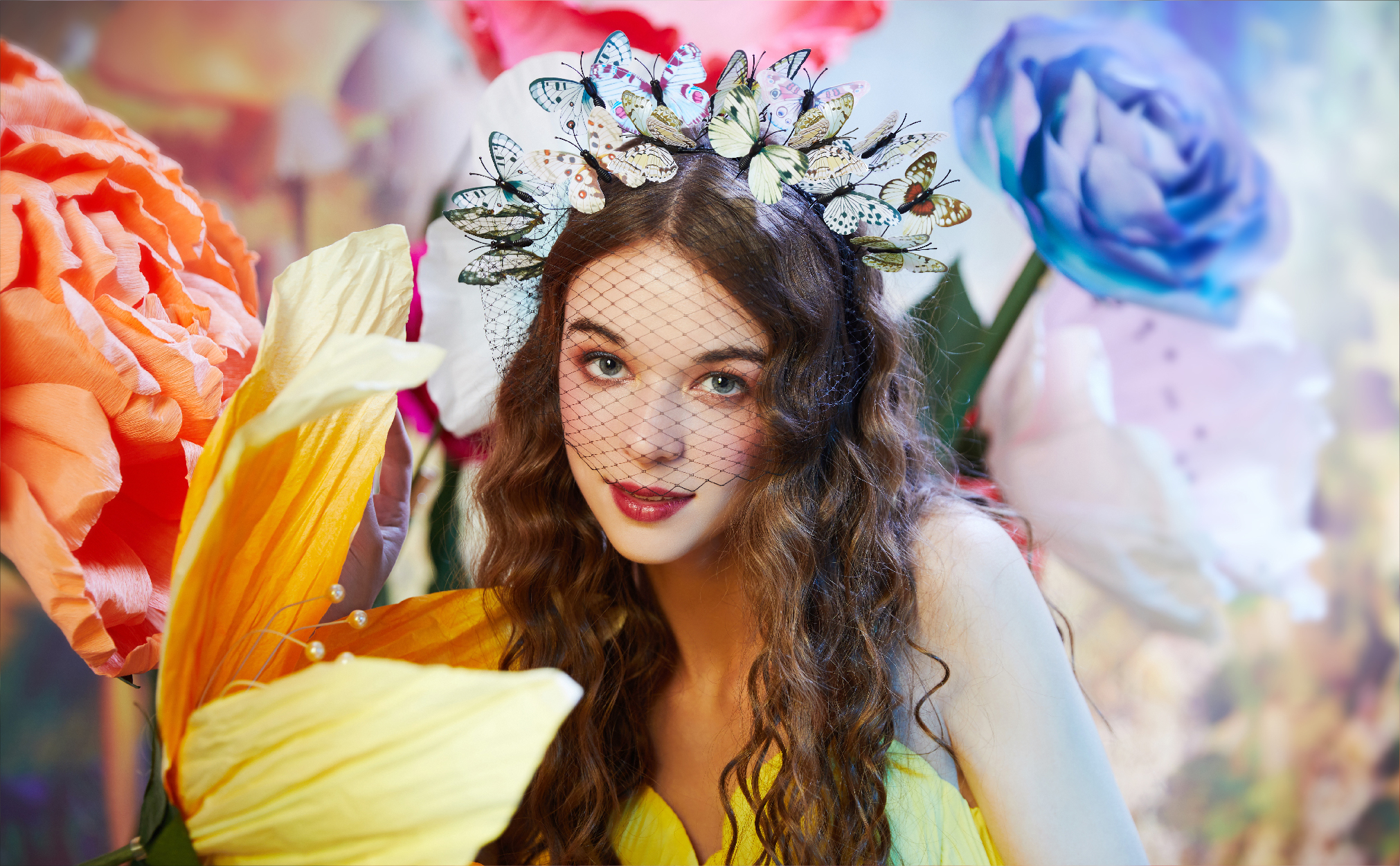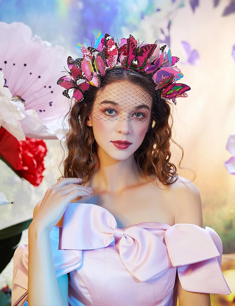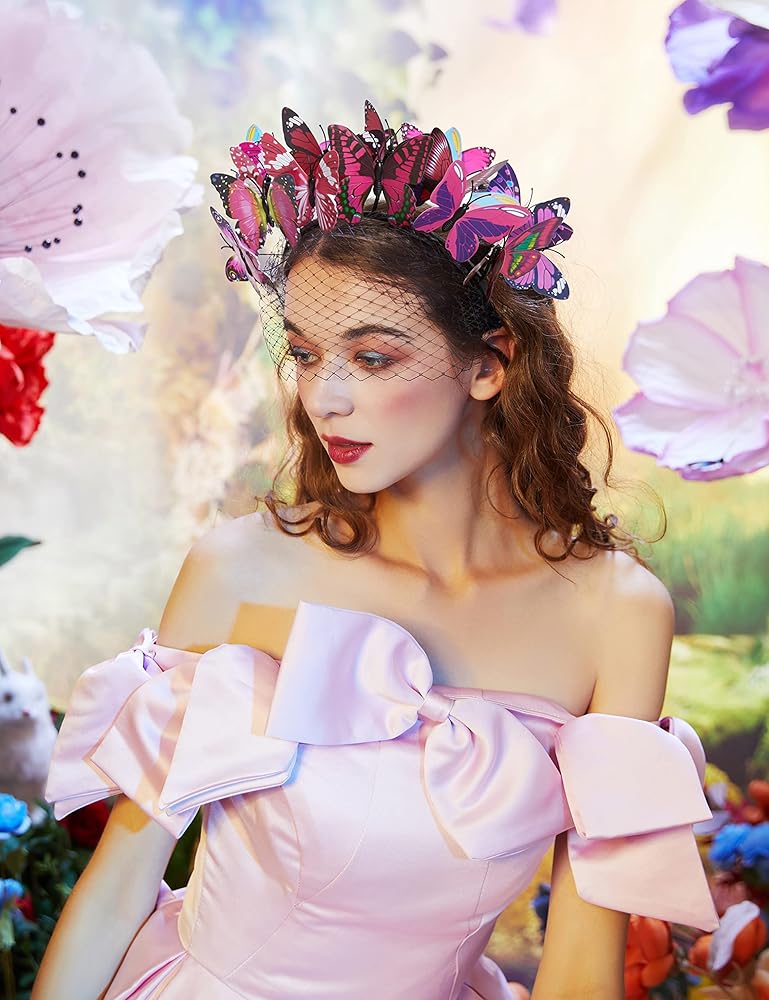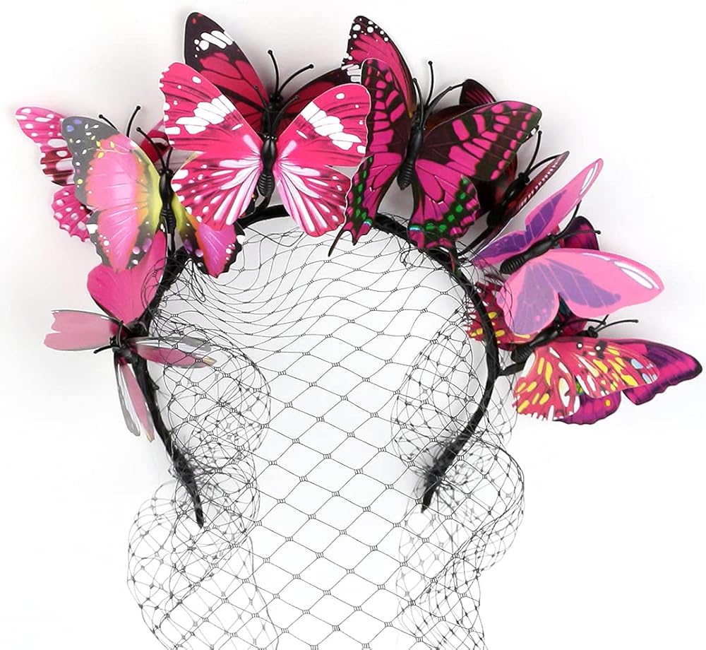 This material of butterfly headpiece: 100% handmade with vivid stereoscopic plastic butterflies and polyester mesh.